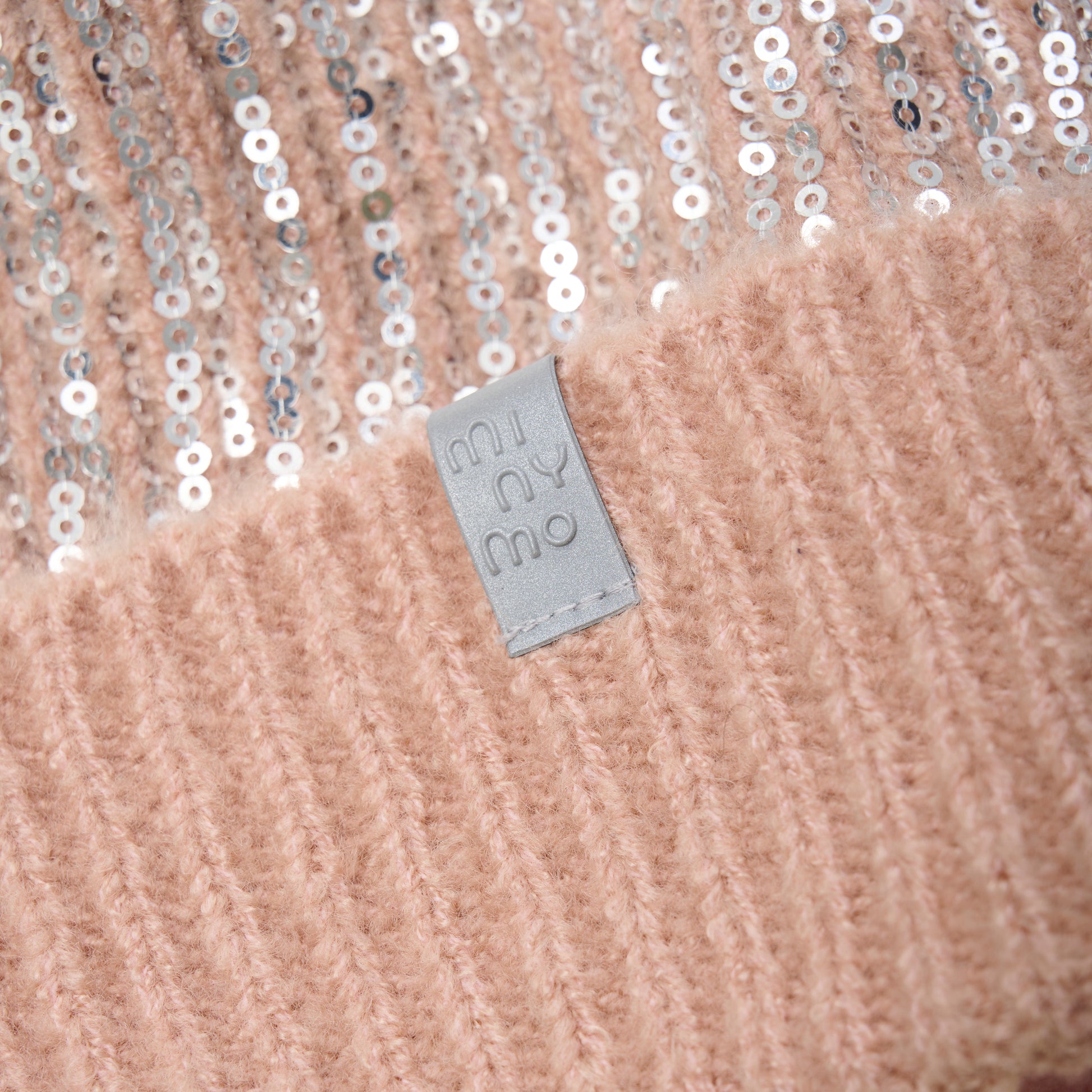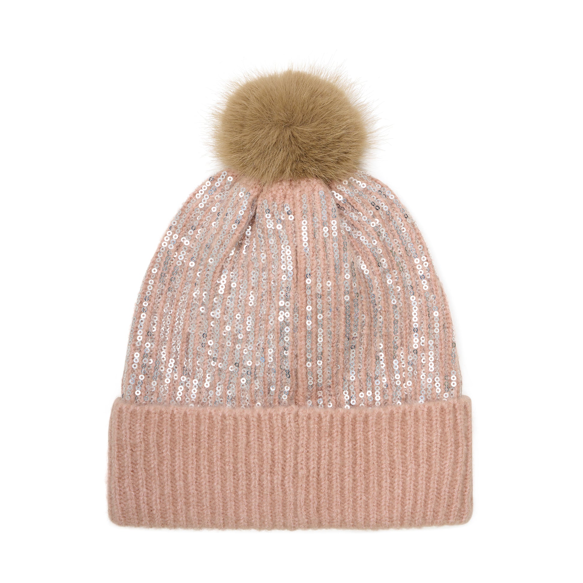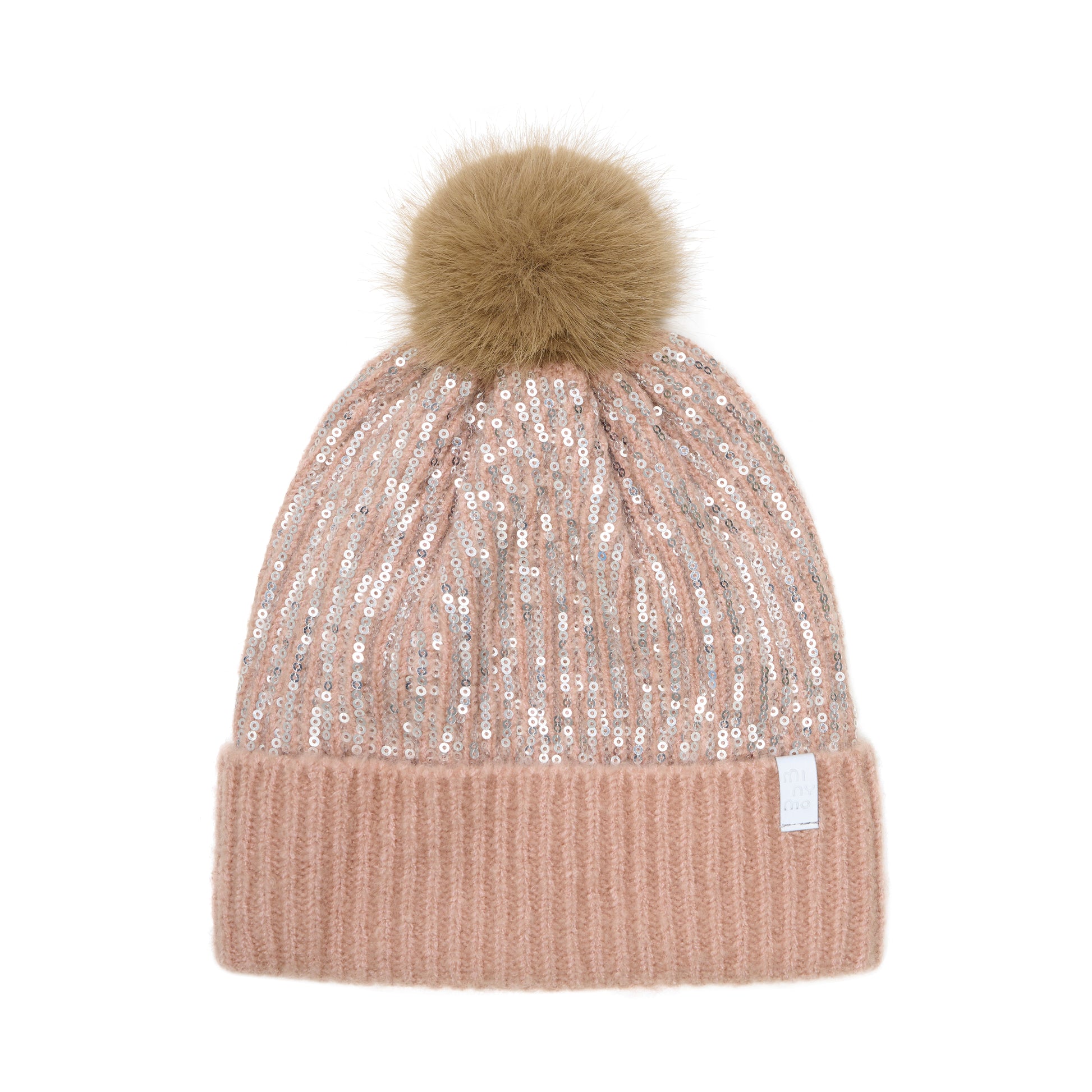 Mit ihrer weichen Strickstruktur und dem großen Kunstfell-Pompon kombiniert sie verspieltes Design mit winterlicher Funktionalität. Die silbernen Pailletten sorgen für ein funkelndes Finish und machen die Mütze zu einem echten Hingucker.