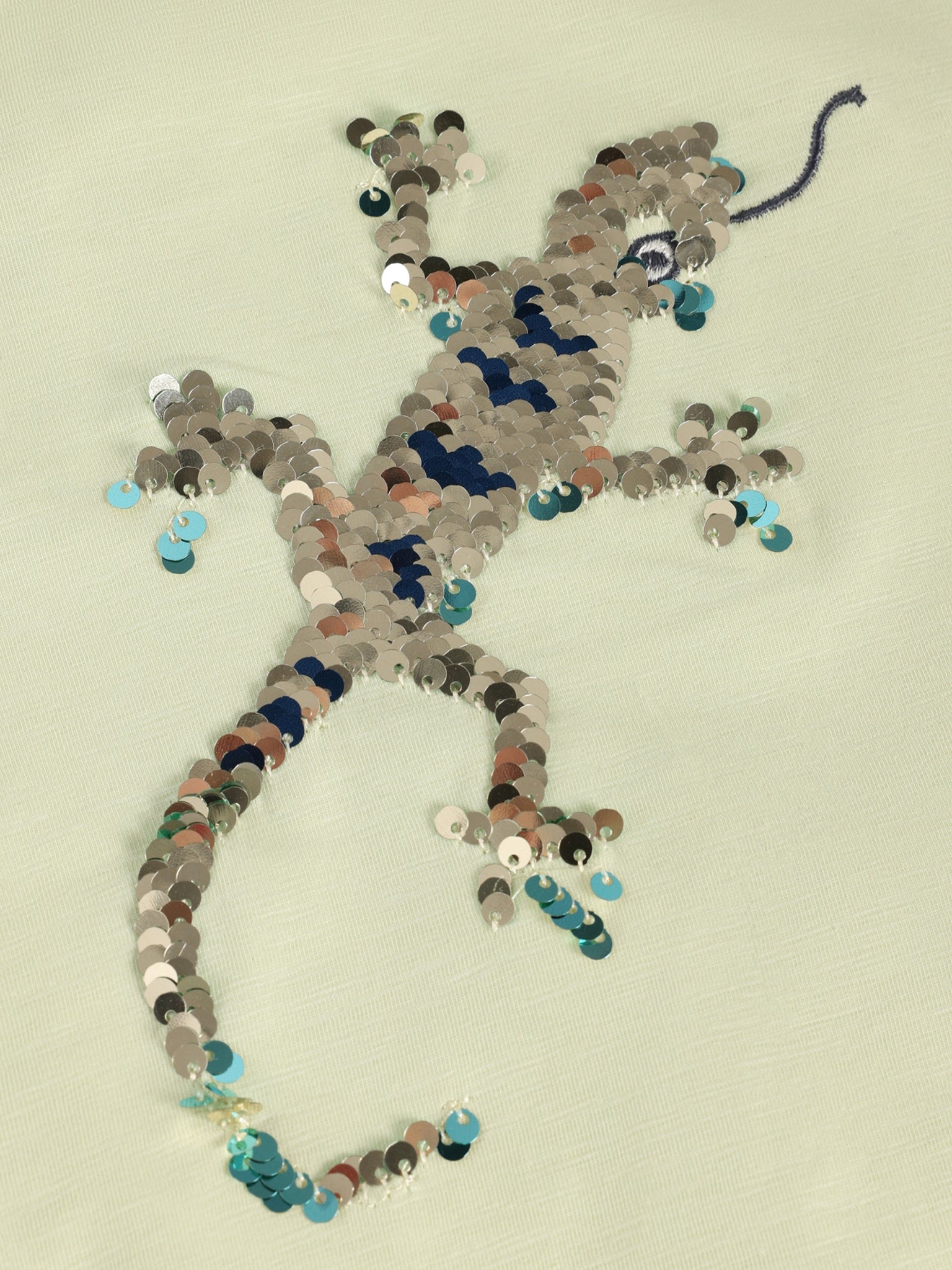 Dieses wunderschöne T-Shirt begeistert mit einem coolen Gecko aus Wendepailletten 🦎✨