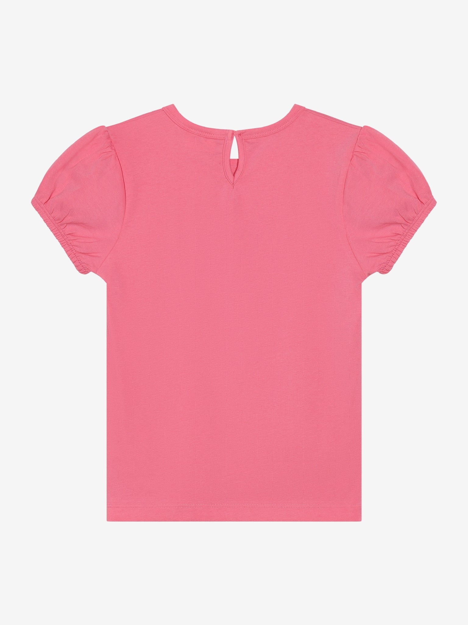 Die leicht gerafften Puffärmel sorgen für eine verspielte, mädchenhafte Note, während der weiche Stoff angenehm auf der Haut liegt und viel Bewegungsfreiheit schenkt. Dank des kleinen Knopfes im Nacken lässt sich das Shirt ganz unkompliziert an- und ausziehen.