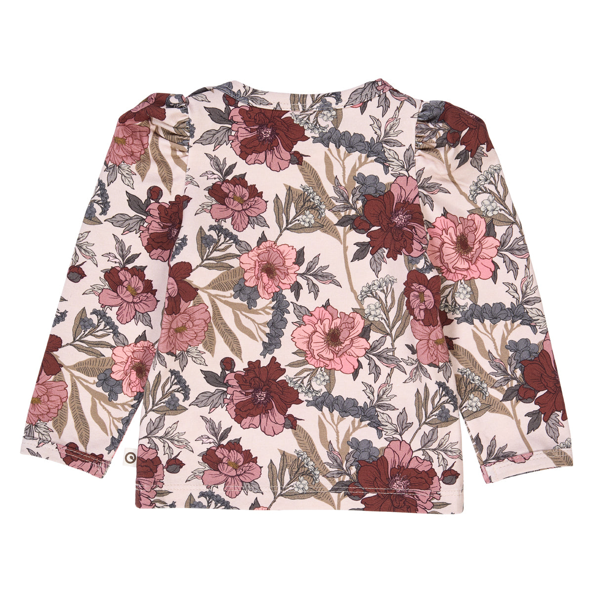 Dieses zauberhafte Langarmshirt von Müsli by Green Cotton bringt florale Leichtigkeit in den Alltag kleiner Mädchen. Auf zartem Roséton entfaltet sich ein traumhaft schöner Blumenprint in warmen Beeren- und Naturtönen – detailreich, harmonisch und einfach besonders!