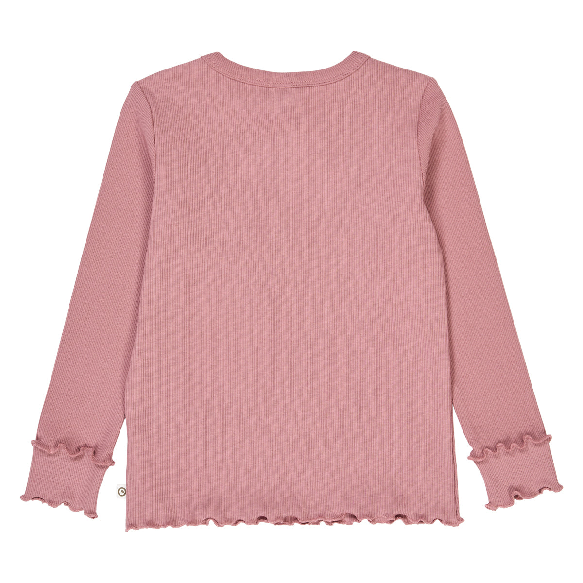 Dieses gerippte Langarmshirt von Müsli ist ein weiches Basic mit verspieltem Touch. Die zarten Rollsäume an Ärmeln und Saum setzen hübsche Akzente, ohne aufdringlich zu wirken.