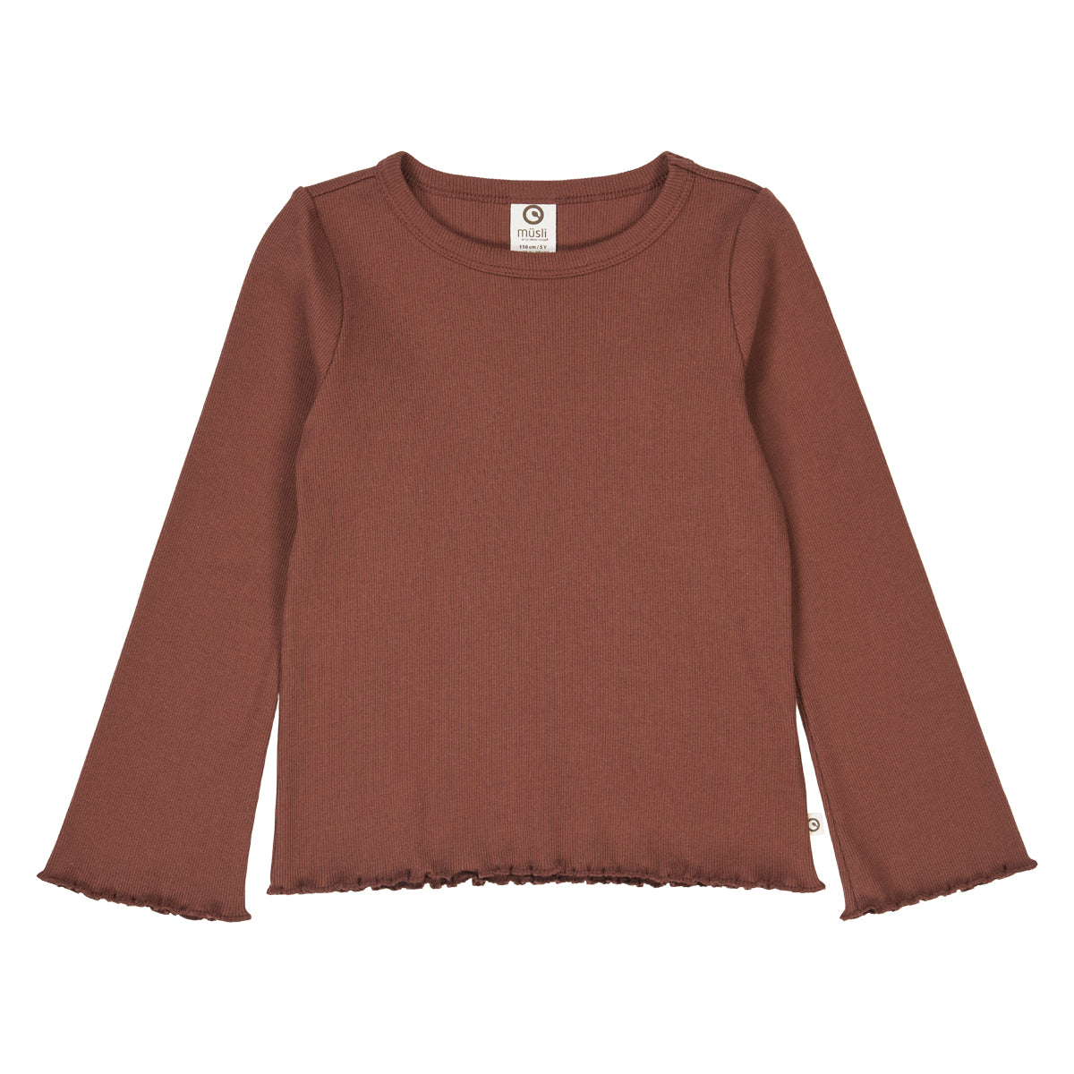Dieses Langarmshirt von Müsli vereint Schlichtheit mit feinen Details. Die gerippte Struktur und die zarten Rollsäume an Ärmeln und Saum verleihen dem unifarbenen Shirt eine dezente Verspieltheit.