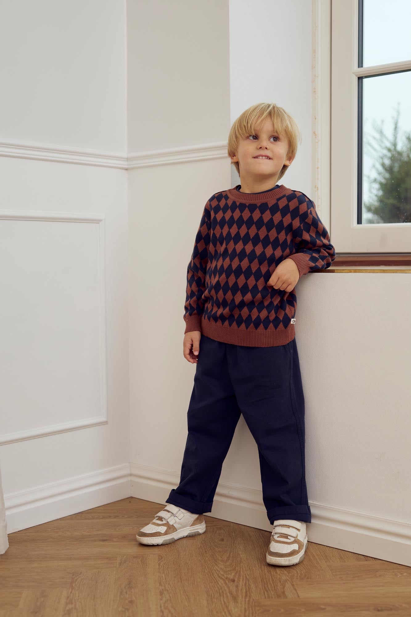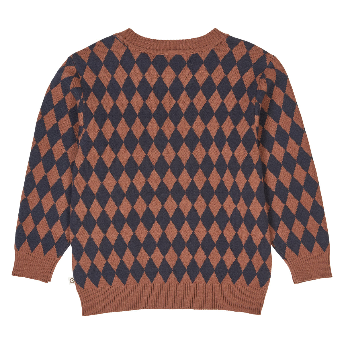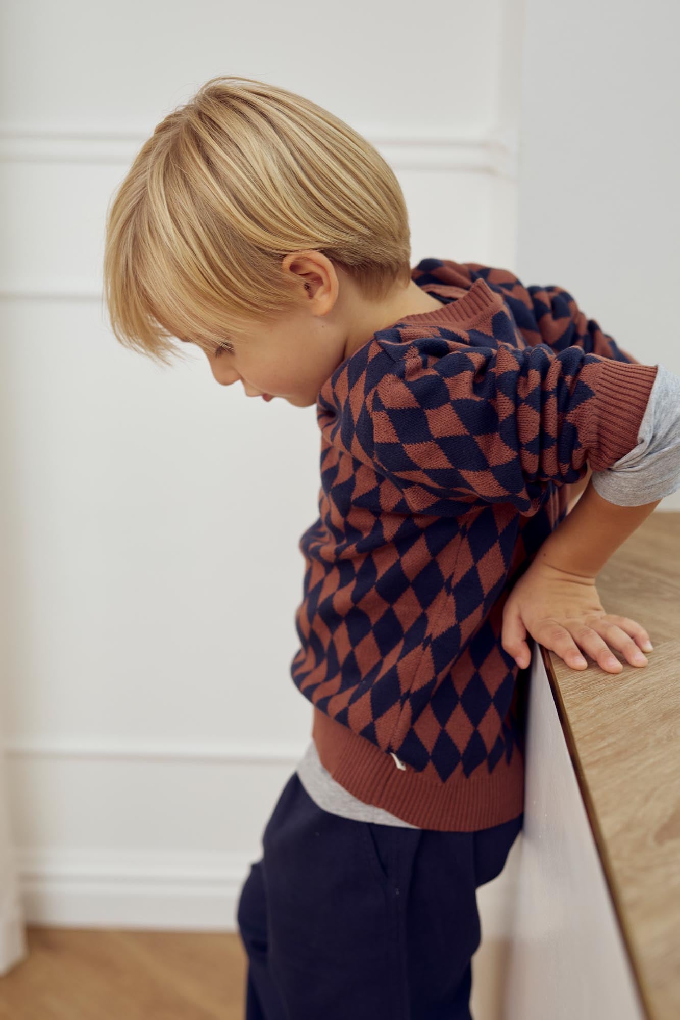 Ein echter Hingucker für die kühle Jahreszeit: Dieser Pullover mit klassischem Rautenmuster verbindet Stil und Komfort auf schöne Weise. Die Farbkombination aus warmem Braun und tiefem Dunkelblau verleiht ihm einen zeitlosen, zugleich modernen Look.