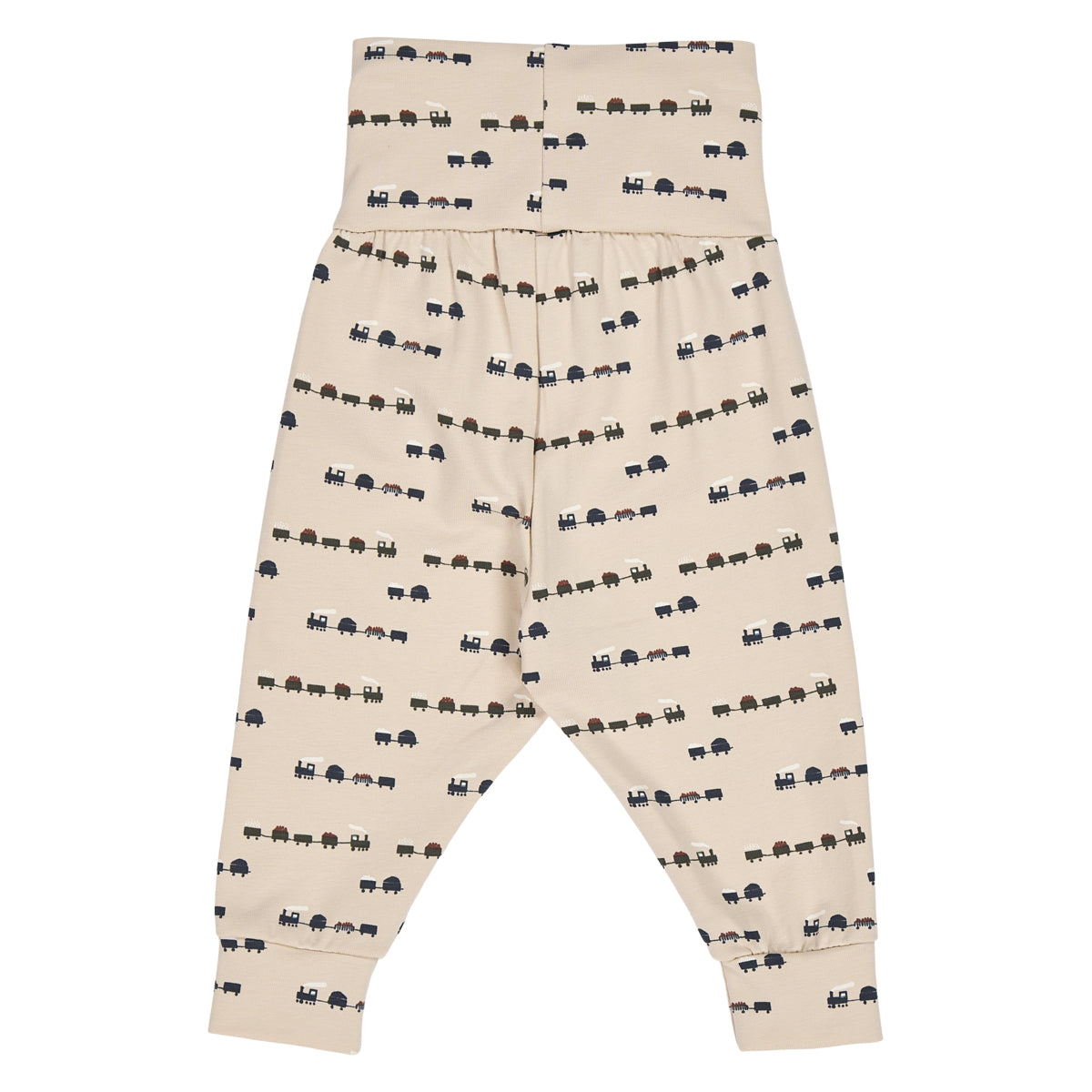Diese gemütliche Hose begeistert kleine Bahnliebhaber mit ihrem verspielten Zug-Alloverprint in sanften Naturtönen. Der bequeme Schnitt mit tiefem Schritt und der breite, elastische Bauchbund sorgen für maximalen Komfort – ganz ohne Zwicken oder Rutschen.