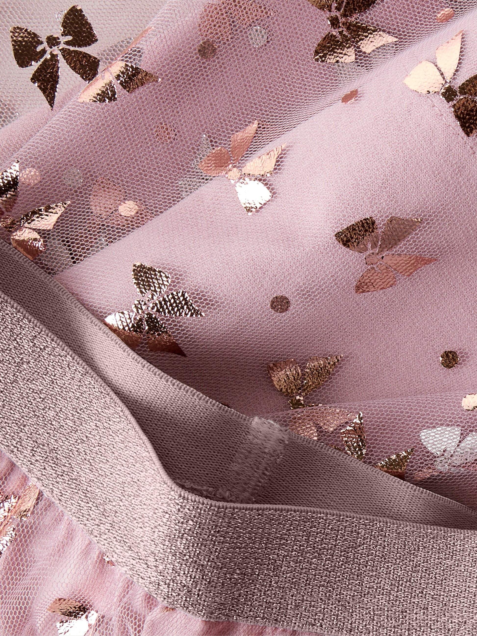 Der Rock besteht aus mehreren weich fallenden Lagen Tüll über einem blickdichten Unterrock, die ihm ein schönes, leichtes Volumen verleihen. Der breite, goldglitzernde, elastische Bund sorgt für einen tollen Akzent, einen bequemen Sitz und ein angenehmes Tragegefühl. ✨