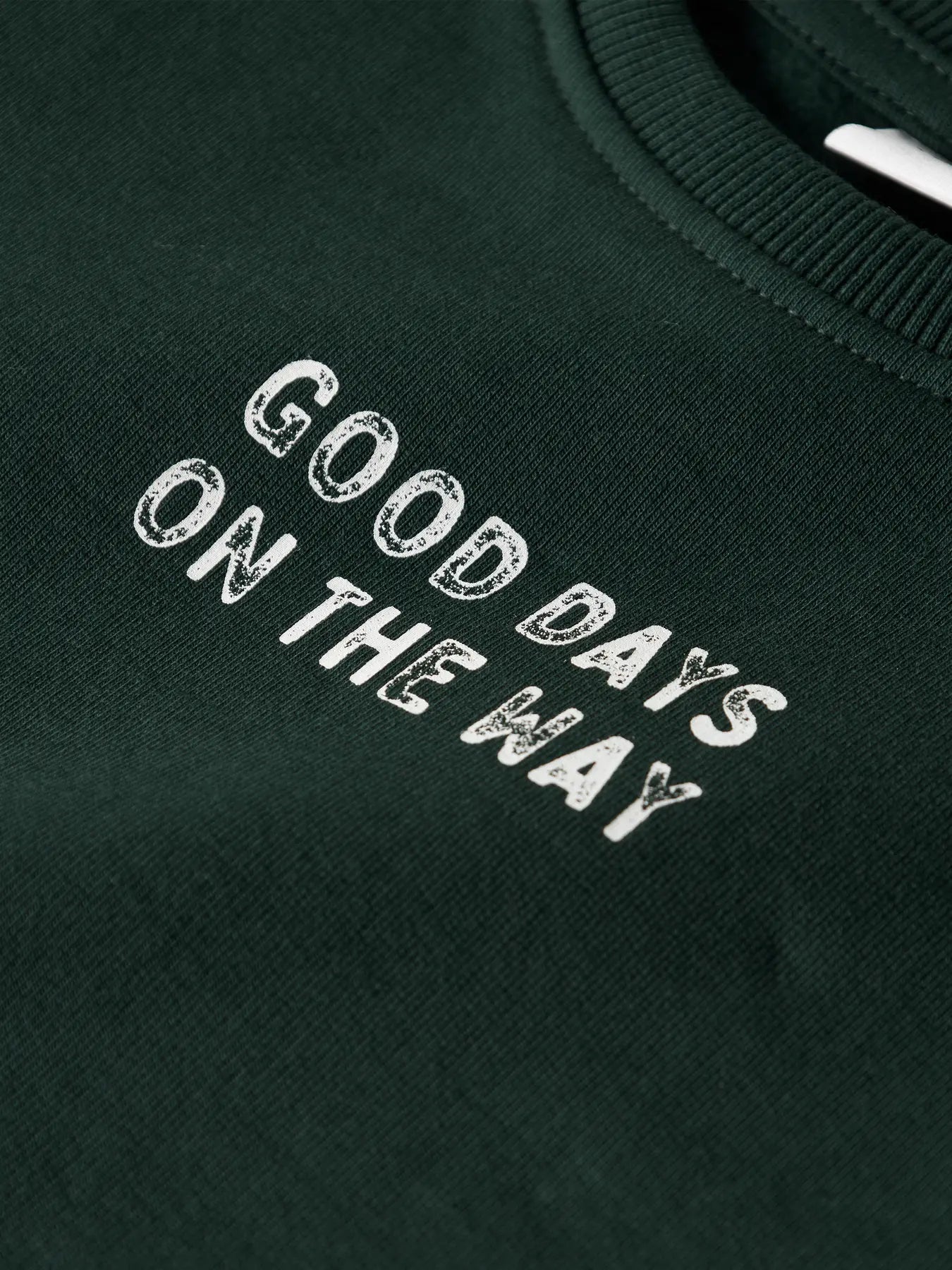 Für kleine Baumeister und Optimisten: Dieser Sweater in tiefem Waldgrün ist super lässig, unfassbar bequem – und ein echtes Statement! 💚