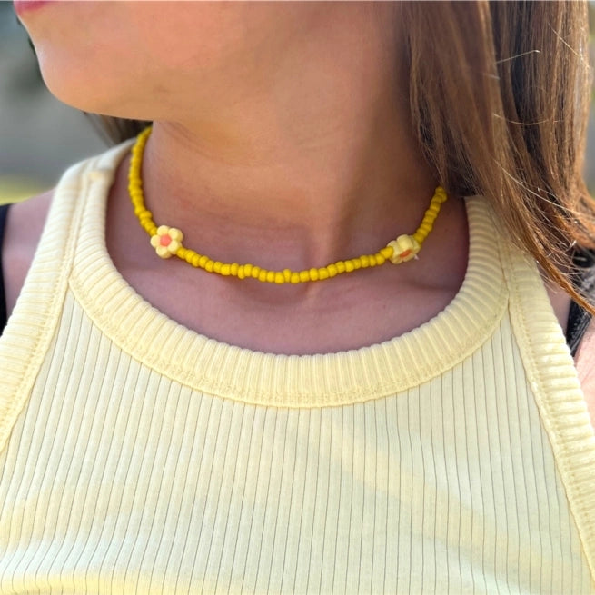 Ratatam! Elastische Halskette mit Blumen - gelb