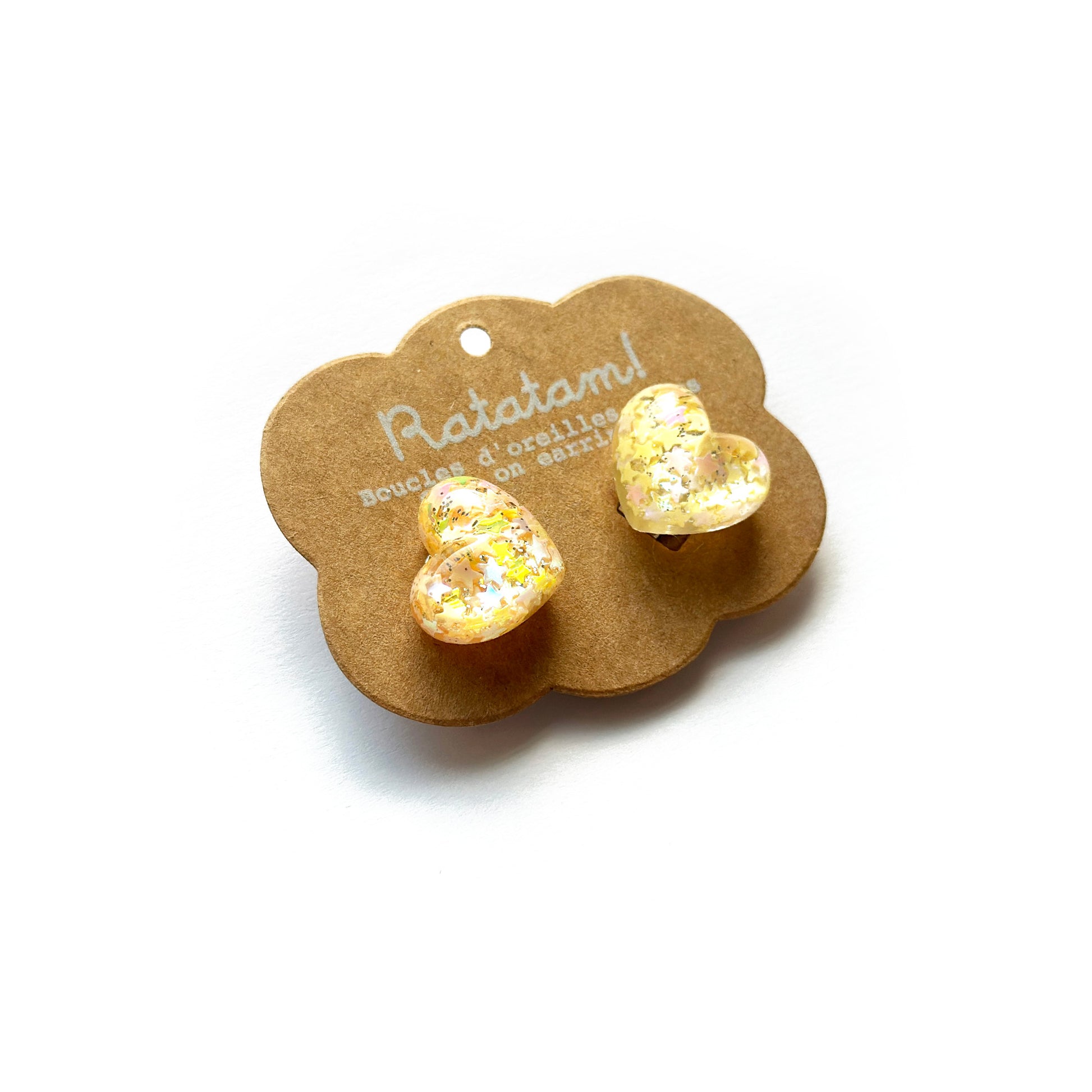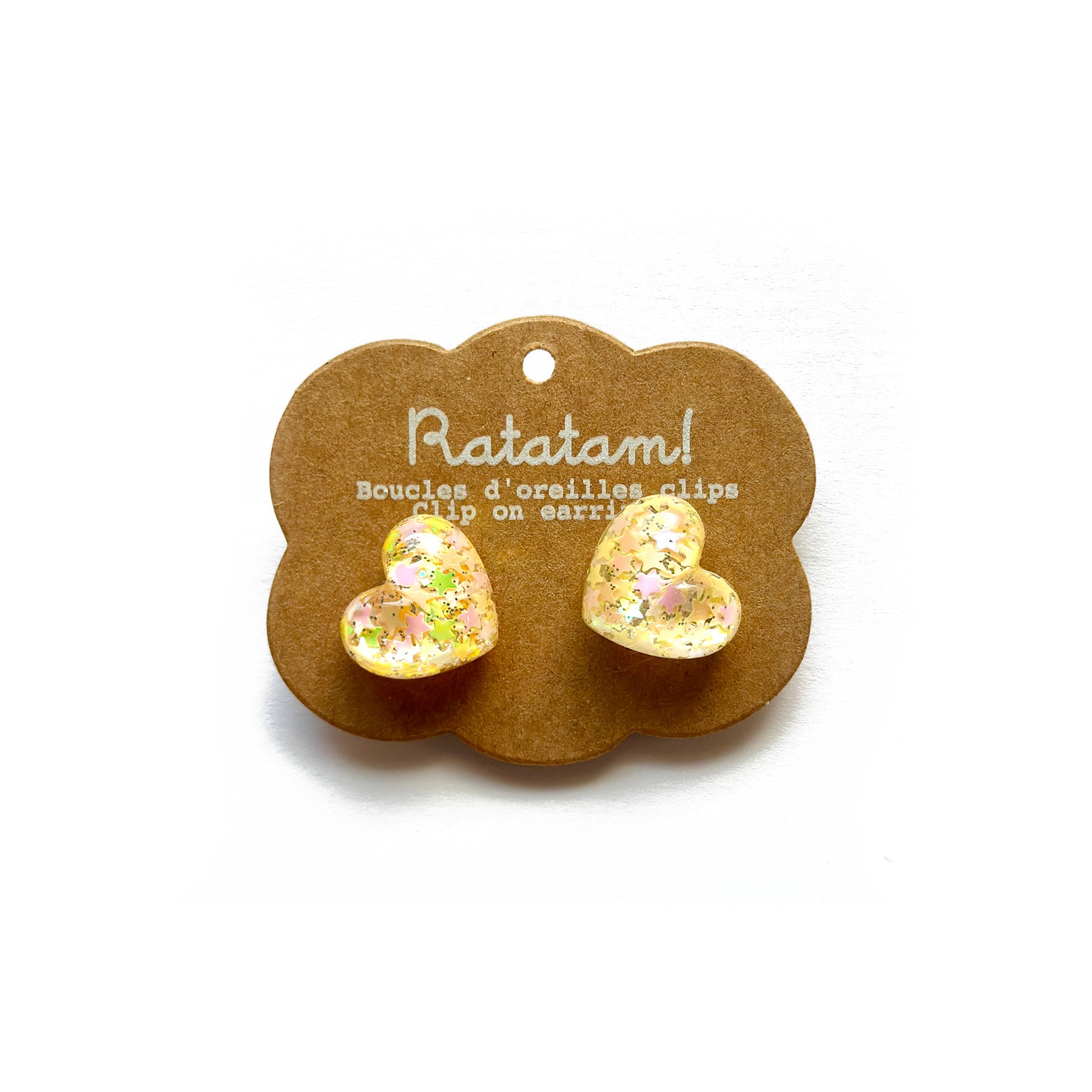 Diese zuckersüßen Clip-Ohrringe in Herzform bringen jedes Outfit zum Funkeln! Mit ihrem zarten Gelbton und dem irisierenden Glitzer im Inneren sind sie ein echter Hingucker für kleine Modefans – verspielt, charmant und einfach zum Verlieben.