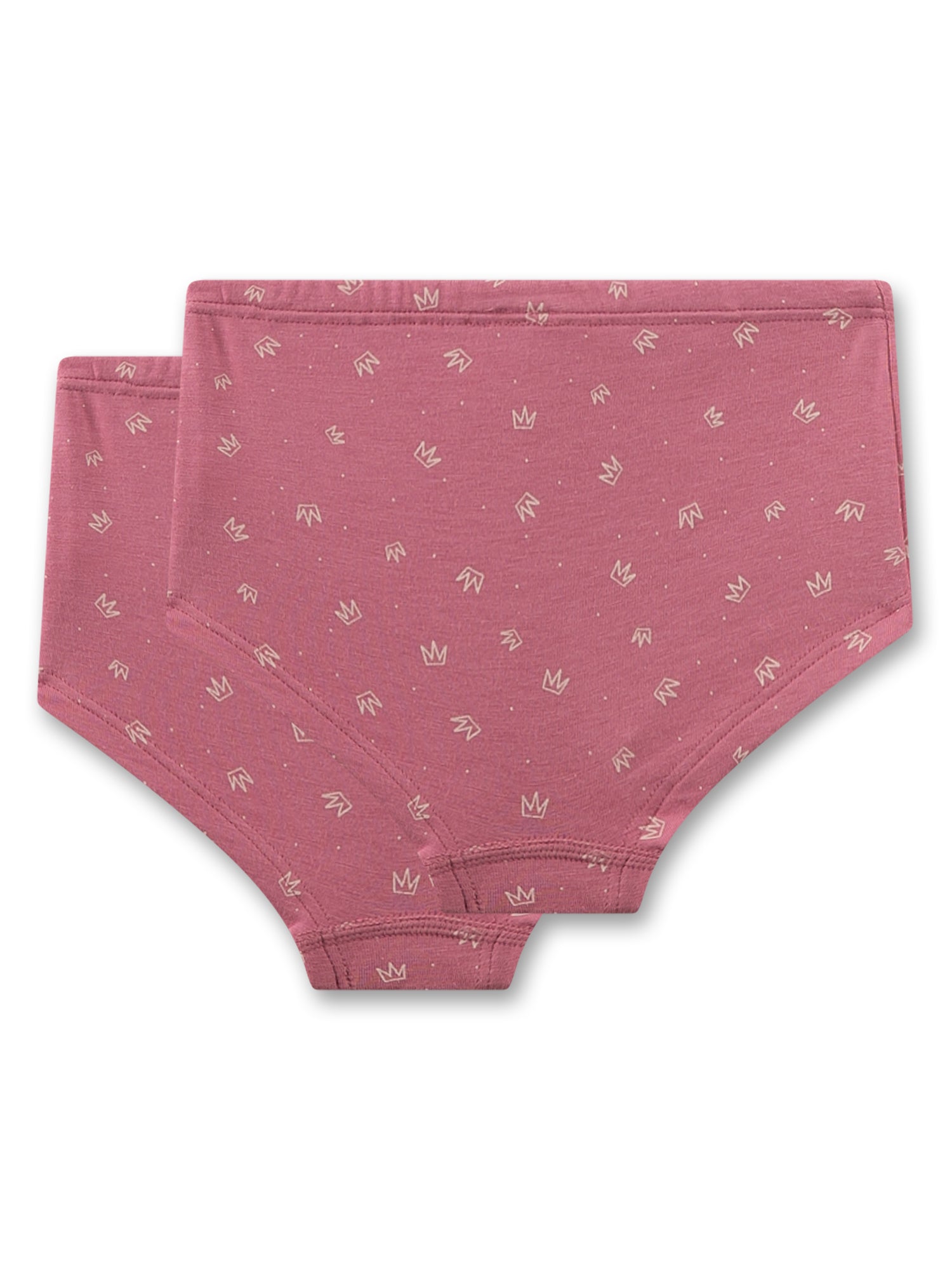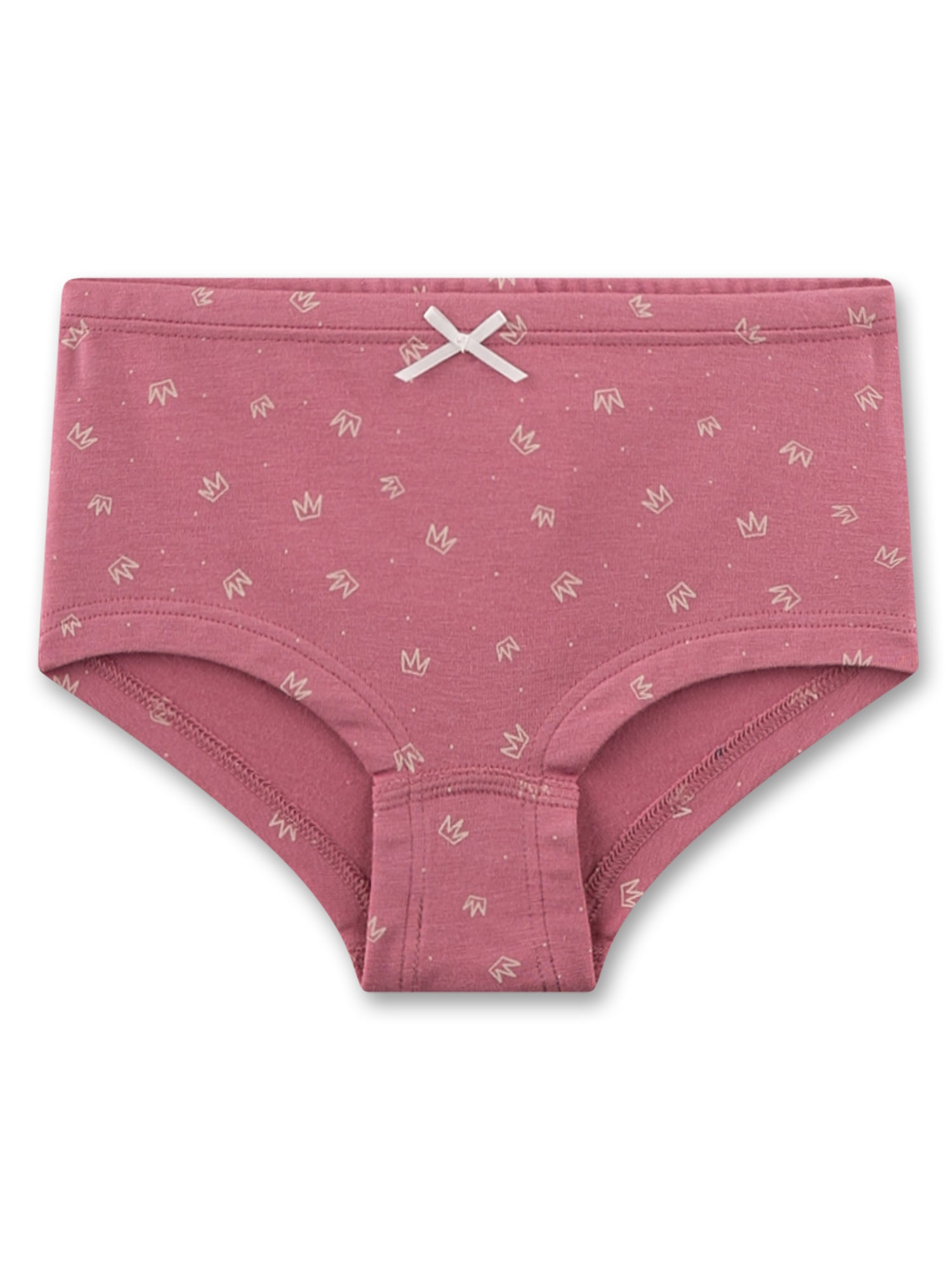 Der warme Rosaton mit dem zarten Krönchen-Alloverprint wirkt verspielt und gleichzeitig wunderbar zeitlos. Die feine Schleife am Bund setzt einen liebevollen Akzent und macht die Cutbriefs besonders charmant.