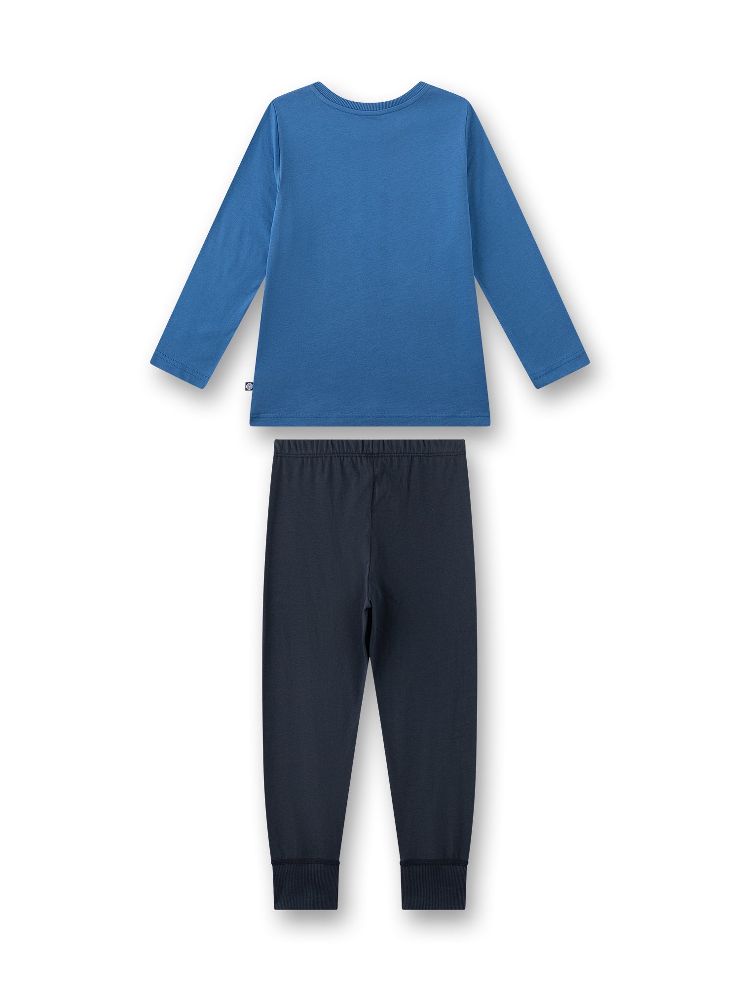 Die lange Hose in Dunkelblau ergänzt das Oberteil ideal. Ein elastischer Bund sorgt für einen bequemen Sitz, während die weichen Rippbündchen an den Beinen das Hochrutschen verhindern – perfekt für ungestörte Träume und viel Bewegungsfreiheit.
