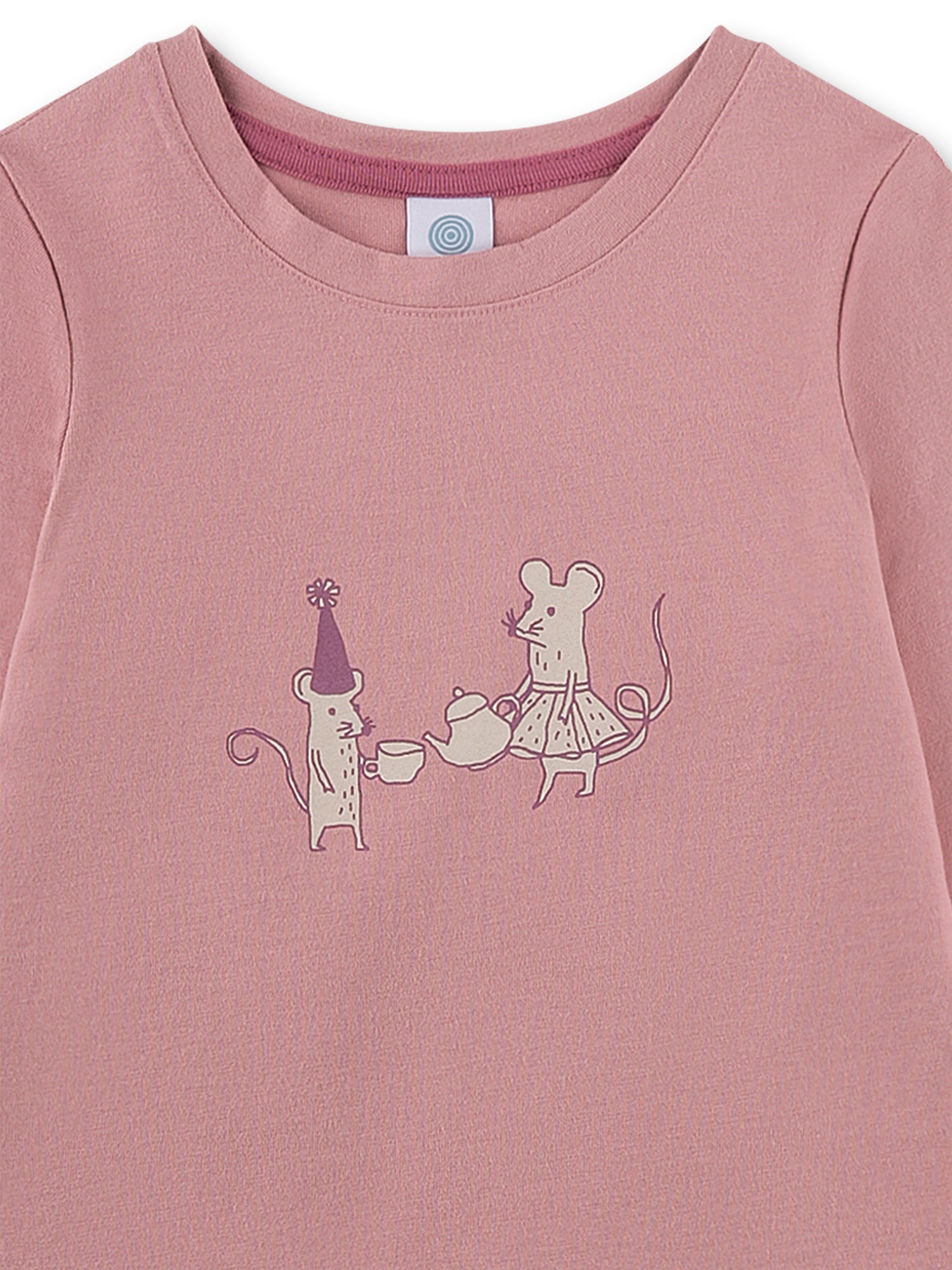 Dieser Pyjama bringt eine Extraportion Gemütlichkeit mit – und zwei zauberhafte Mäuschen auf der Brust, die sich bereit für die Pyjamaparty gemacht haben.