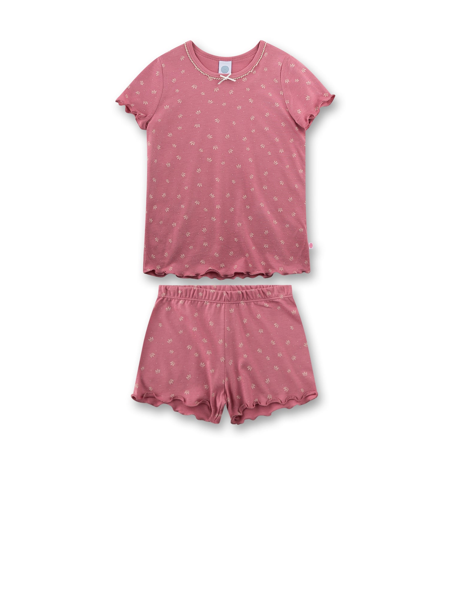 Dieser kurzärmelige Kinder-Schlafanzug aus einem hochwertigen Baumwoll-Modal-Mix ist wunderbar weich, leicht und perfekt für warme Nächte. Das sanfte Rosé mit feinem Krönchen-Allover wirkt verspielt und gleichzeitig zeitlos schön. Kleine Details wie die zarte Schleife am Halsausschnitt und die hübschen Wellenabschlüsse machen das Set besonders liebevoll 👑✨