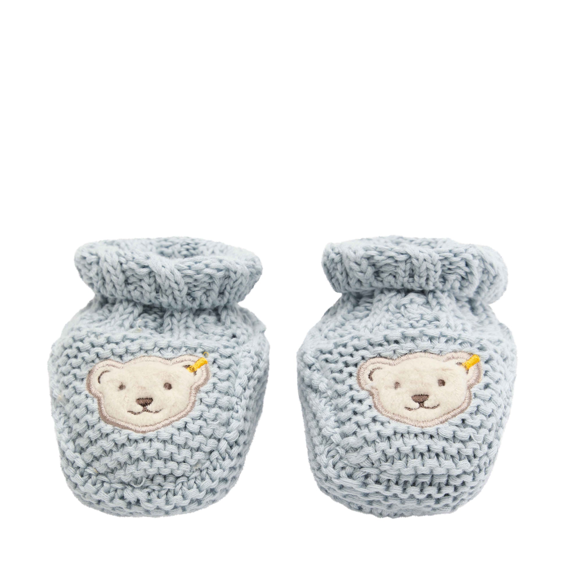 In den Babyschuhen aus flauschigem Organic-Cotton-Strick finden die kleinsten Füße ein wärmendes Plätzchen. Die Schuhe sind mit einem Jerseyfutter ausgestattet und laden zum Wohlfühlen ein. Aus mehreren Teilen gefertigt lässt die niedliche Passform neugierigen Kinderfüßen Platz, um sich auszuprobieren. Der sanfte Schlupfbund sorgt dabei jederzeit für perfekten Sitz. Hübsches hellblau begeistert kleine Trendsetter. Auch flauschige Steiff Teddybärmotive sind mit unterwegs. Die Schuhe sind aus Bio-Baumwolle gefertigt.