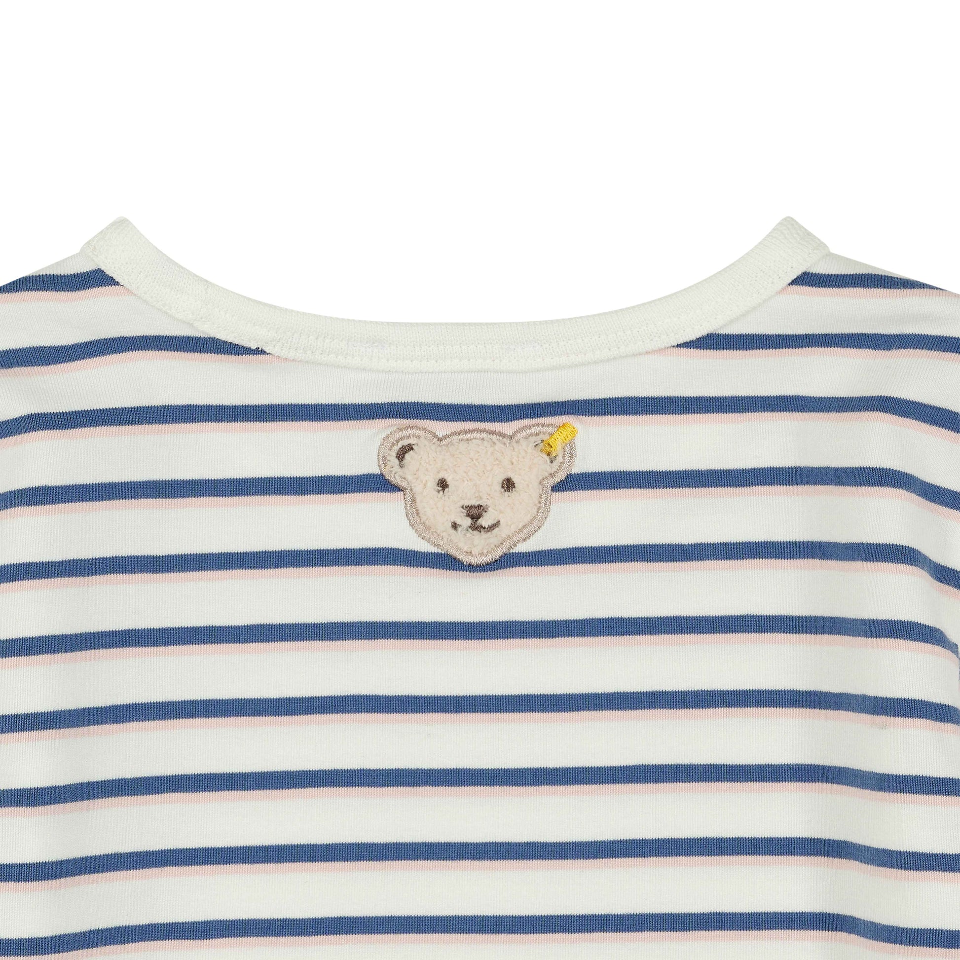 Ein Hingucker ist diese bequeme Bluse mit schmalen Querstreifen in Blau- und Rosatönen und Fältchen am Ärmel. Weicher Jersey sorgt für ein herrliches Tragegefühl und wärmt angenehm. Flexible Bündchen ermöglichen unkompliziertes Hineinschlüpfen und Wohlfühlen. Ein leicht ausgestellter Abschluss schenkt aktiven Mädchen Bewegungsfreiheit zum Spielen und Toben. Für alle Fälle wird Ihre Kleine unterwegs von einem flauschigen Teddybärmotiv auf dem Rücken begleitet. Viel Vergnügen!