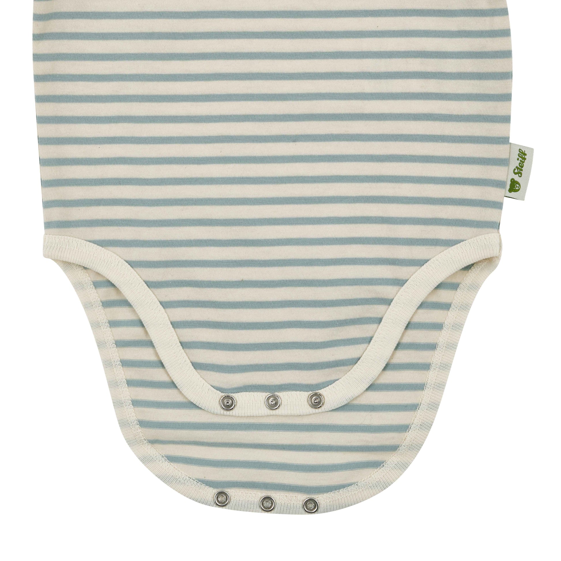 Mit seinem frischen Ringelmuster in zartem Grün bringt dieser Kurzarmbody von Steiff eine leichte, freundliche Note in den Babyalltag. Der weiche Single Jersey schmiegt sich sanft an die empfindliche Haut und sorgt den ganzen Tag über für ein angenehmes Tragegefühl.