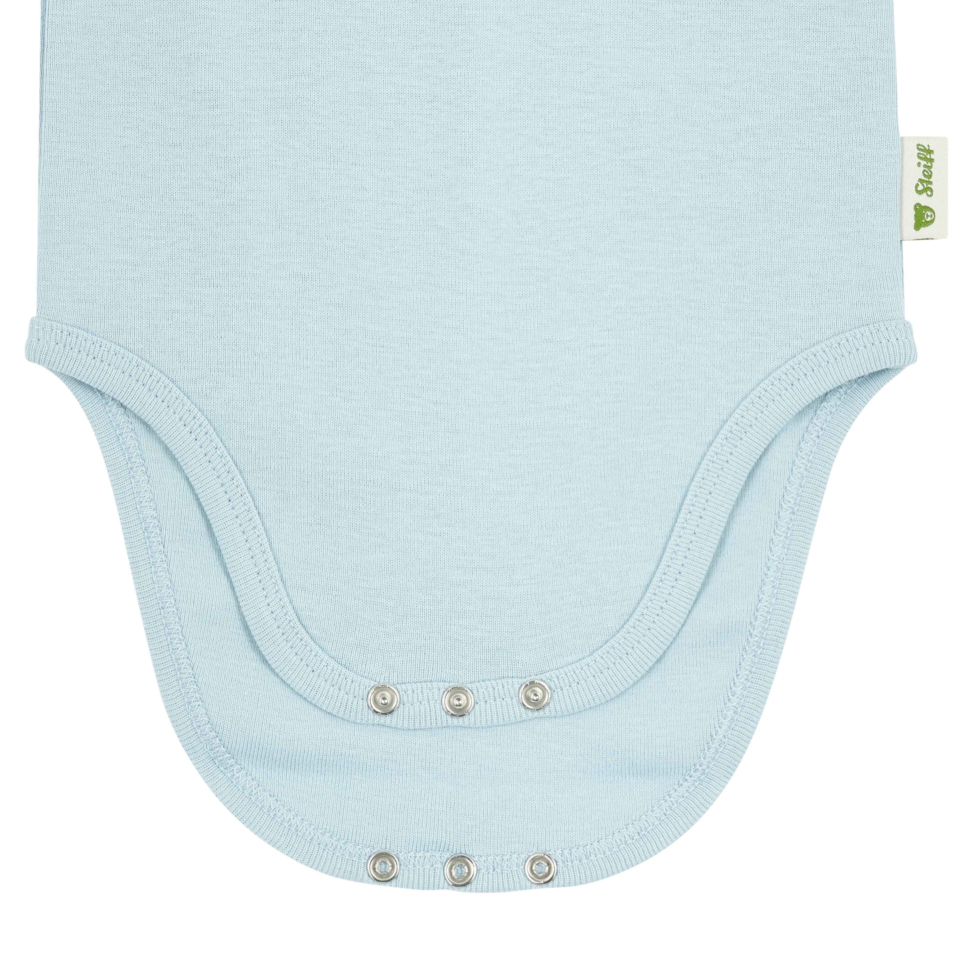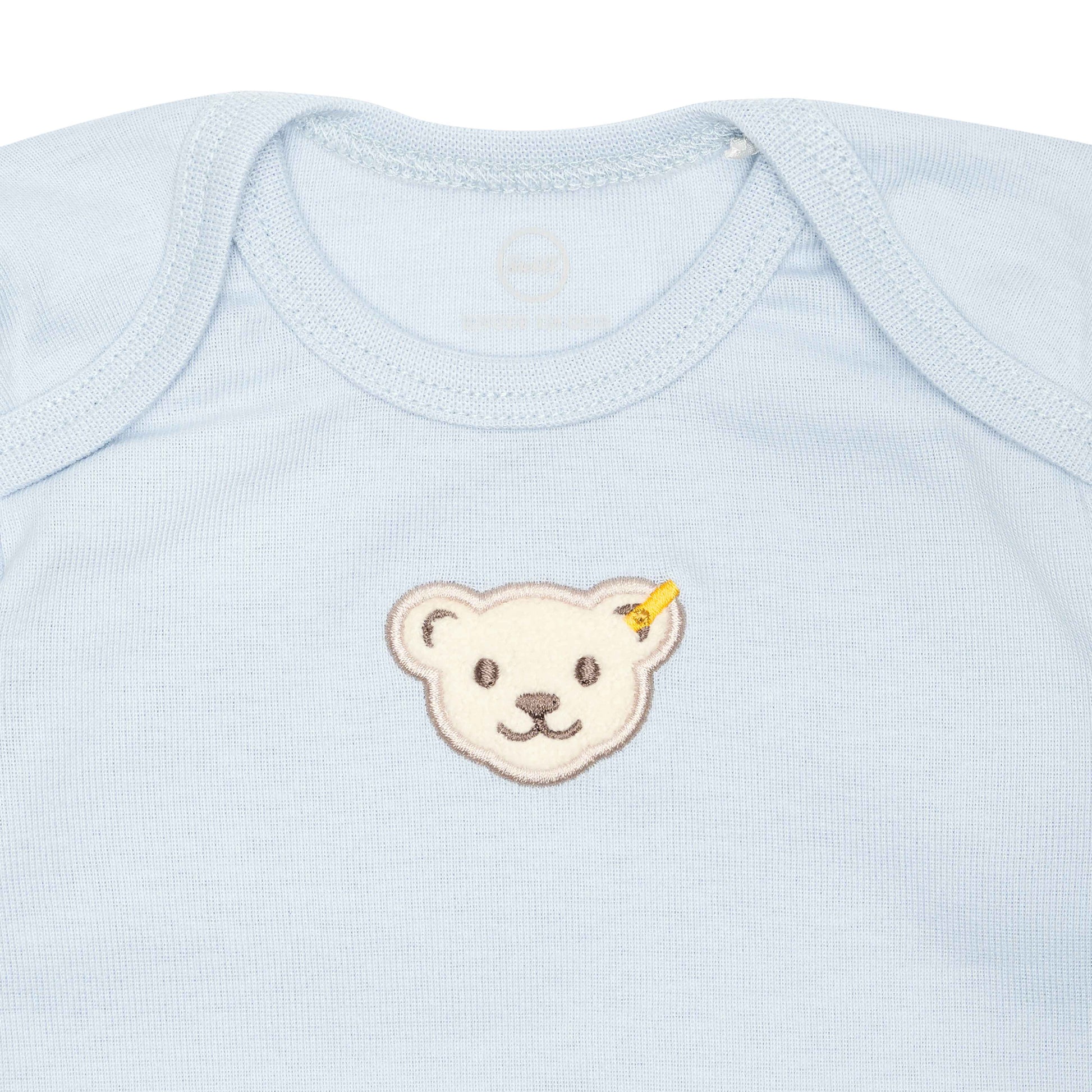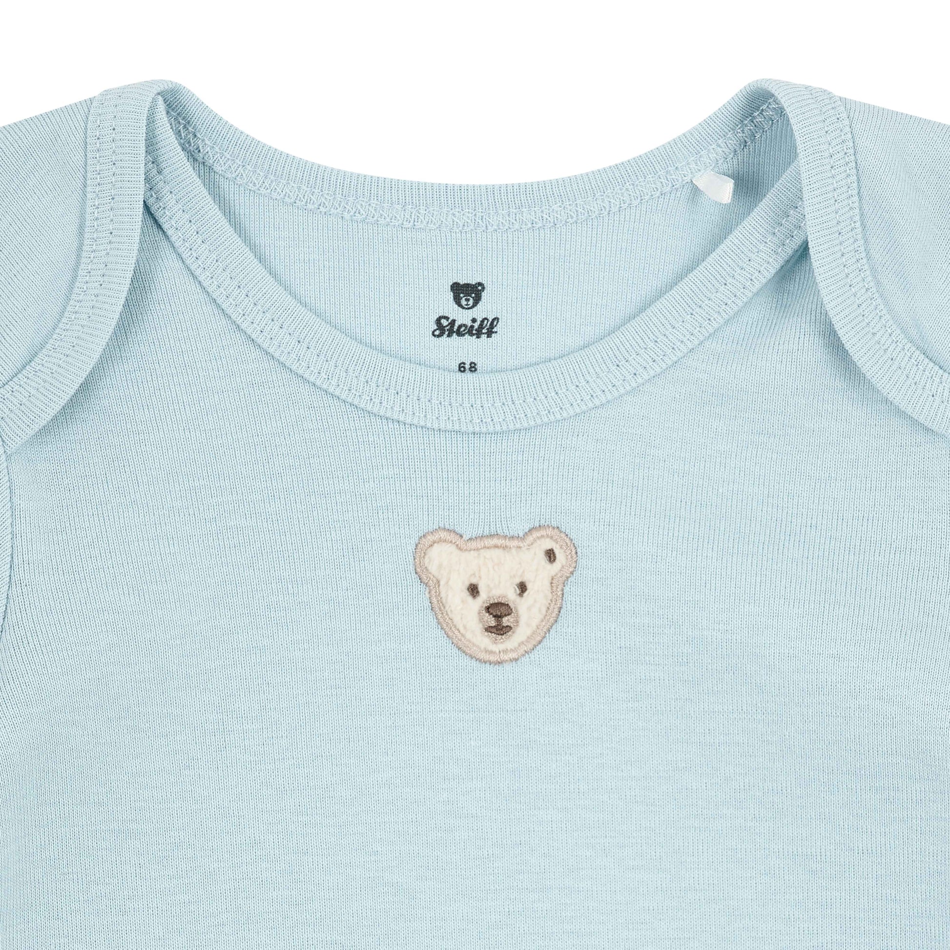 Angenehm leicht und in bequemer Passform gearbeitet ist der klassische Body die Grundlage für vielseitige Kombinationen zu jeder Gelegenheit. Sehr flexibel lässt sich darin auch wunderbar spielen, herumtoben oder gemütlich einschlafen. Schlupfkragen und Druckknöpfchen sind praktische Helfer beim Anziehen. Weicher Jersey verwöhnt die feine Babyhaut mit einem herrlichen Tragegefühl. Zartes Hellblau verleiht niedliche Romantik. Als süße Applikation auf der Brustmitte begleitet ein Steiff Teddybärmotiv Ihr Kleines durch den Tag. Charmantes Basic!