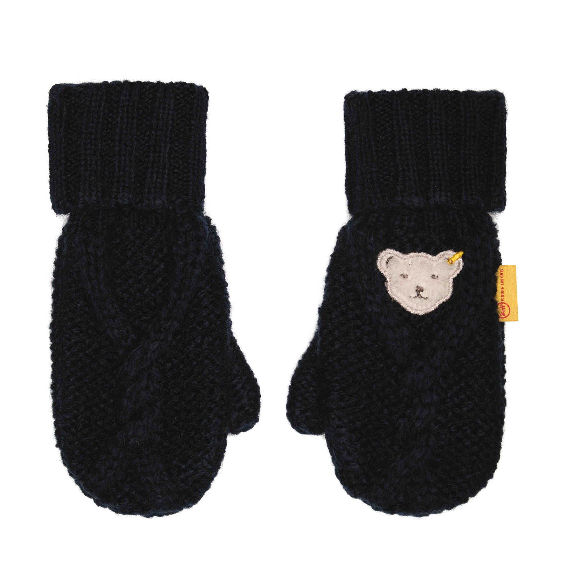 Wenn es draußen kalt und ungemütlich ist, bieten diese Strickfäustlinge kleinen Händen ein wärmendes Plätzchen. Weicher Baumwollstrick ist pflegeleicht und garantiert ein herrliches Tragegefühl. Flexible Rippbündchen sorgen für perfekten Sitz und schützen zusätzlich. Navyblau mit Zopfmustern passt als Klassiker zu jedem Winteroutfit. Die Handschuhe sind so cool, dass kleine Ausflügler damit gern noch etwas länger draußen spielen wollen. Ein flauschiges Steiff Teddybärmotiv begleitet Ihren Kleinen zu jedem Abenteuer.