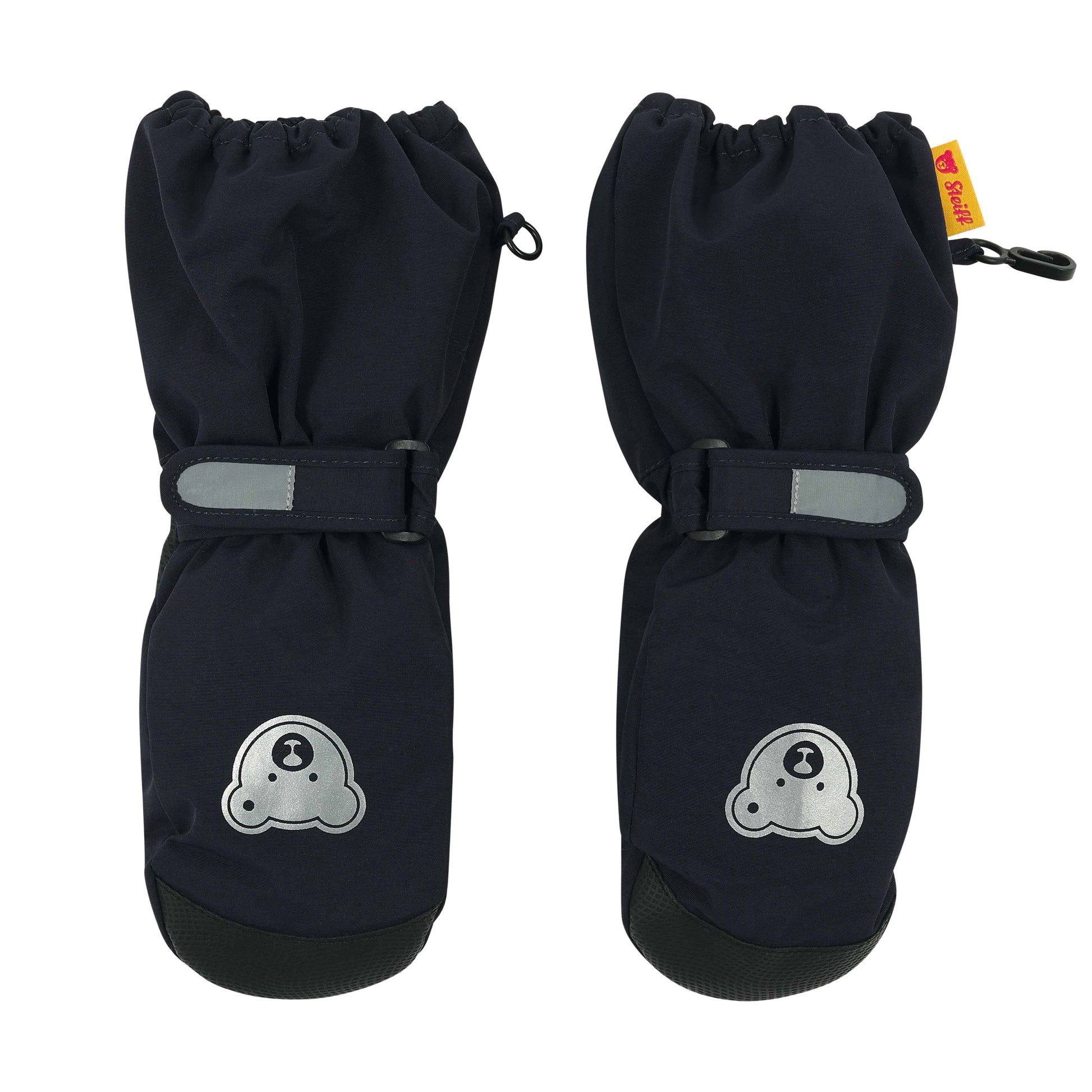 Kleine Schneeabenteurerinnen und -abenteurer bleiben mit diesen wetterfesten Fäustlingen wunderbar gewärmt. Dank einer ökologischen BIONIC-FINISH®ECO Imprägnierung ohne Weichmacher, ist das Obermaterial wind- und wasserabweisend sowie atmungsaktiv. Mit einer Wassersäule von 8000 mm bieten die Handschuhe zuverlässigen Schutz bei Nässe. Die weiche Wattierung und das kuschelige Fleece Futter sorgen für extra Wärme an kalten Tagen. Elastische Bündchen und ein verstellbarer Klettverschluss garantieren einen sicheren Sitz. Ein reflektierendes Steiff Teddybärmotiv auf dem Handrücken schenkt zusätzliche Sichtbarkeit – und begleitet mit einem Hauch Geborgenheit durch den Winter.