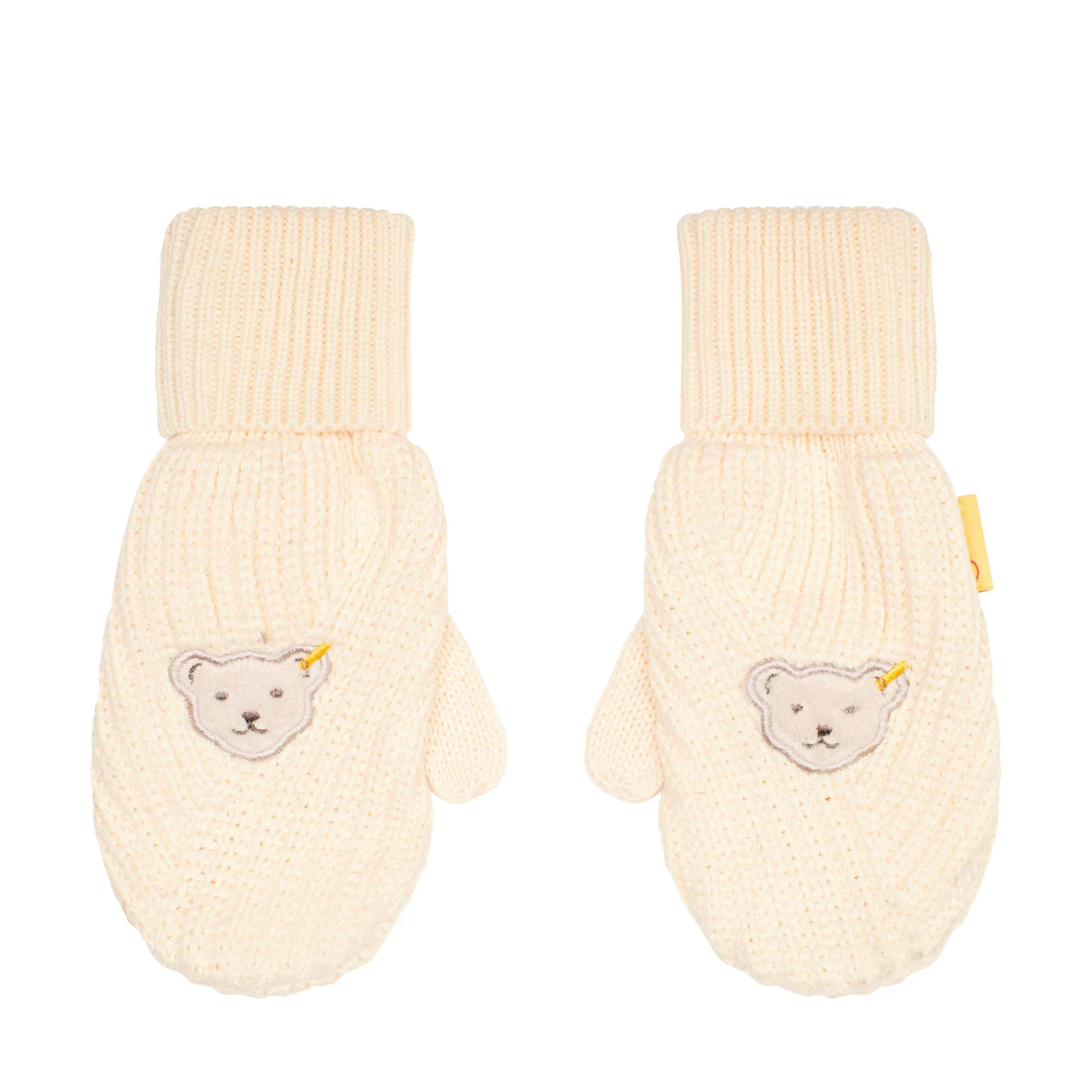 Flauschige Strickfäustlinge bieten kleinen Händen unterwegs ein wärmendes Plätzchen, wenn es draußen kühl und windig ist. Baumwollstrick ist pflegeleicht und garantiert ein herrliches Tragegefühl. Rippbündchen sorgen für perfekten Sitz. Wollweiß passt zu Farbklassikern wie auch zu fröhlichen Trendfarben. Das asymmetrische Strickmuster begeistert kleine Ausflüglerinnen mit süßem Retro-Charme, sodass sie mit den Handschuhen gern noch etwas länger draußen bleiben. Für alle Fälle halten flauschige Steiff Teddybärmotive auf beiden Handschuhen unterwegs die Augen für Ihre Kleine offen.
