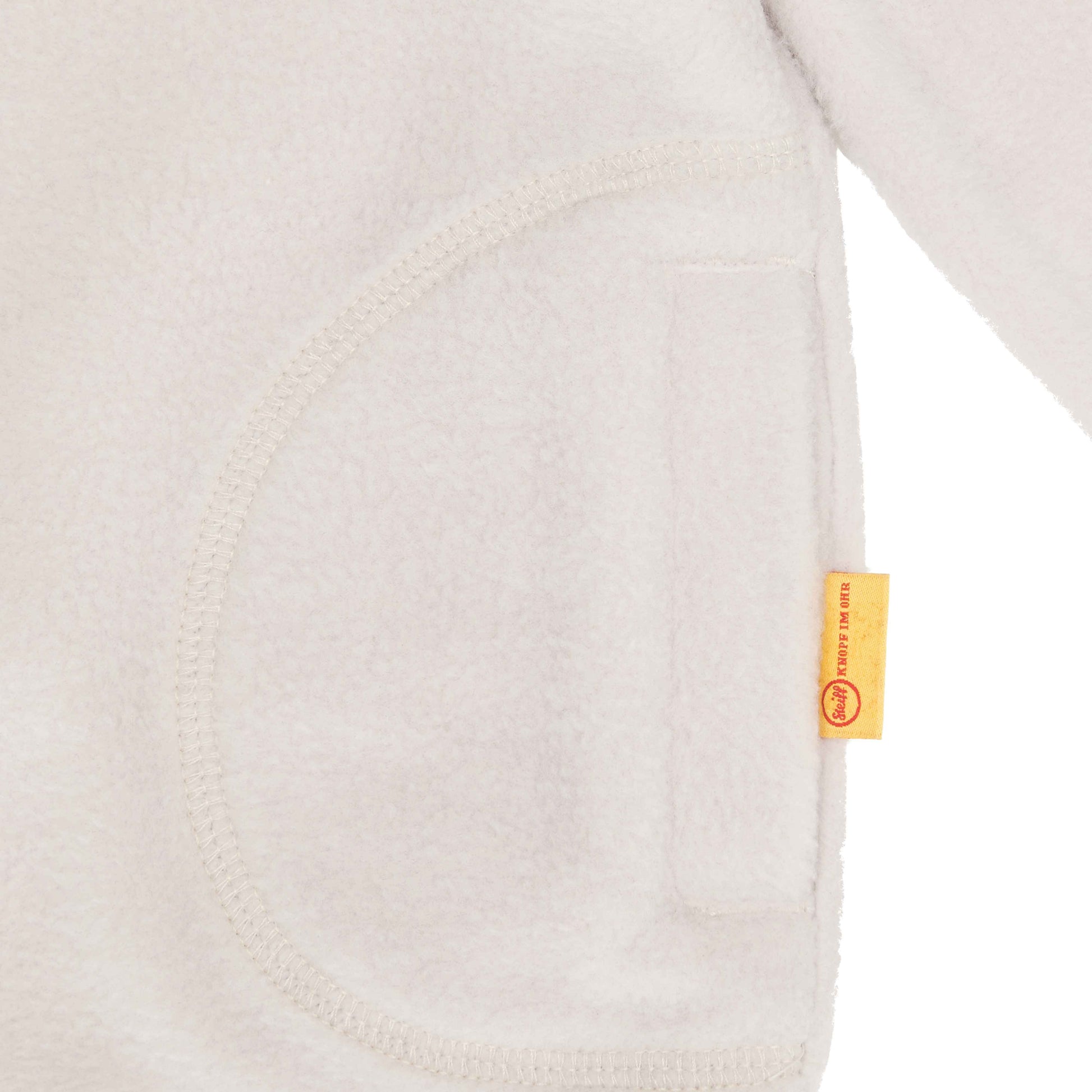 Ist es draußen ungemütlich windig und kalt, lockt diese kuschelige und doch leichte Fleecejacke kleine Abenteurer vor die Tür. Dank eines Stehkragens ist der Halsbereich bestens geschützt. Ein praktischer Reißverschluss ermöglicht unkompliziertes Anziehen. Die lockere Passform schenkt Bewegungsfreiheit. Die leicht verstaubare Jacke ist einzeln oder als Zwischenlage kombiniert perfekt für Alltag und auf Reisen. Seitentaschen wärmen die Hände. Beige passt zu jedem Outfit. Für alle Fälle ist auch ein flauschiges Steiff Teddybärmotiv überall mit dabei. Einfach gemütlich!