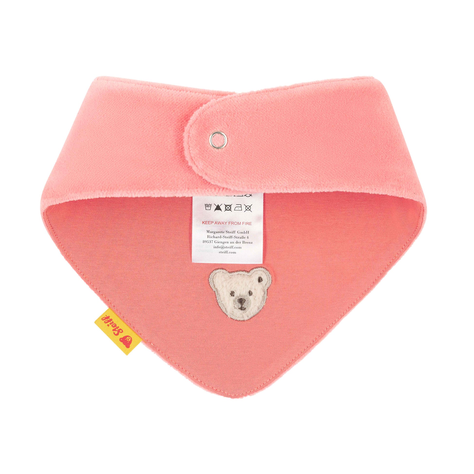 Kleine Abenteurerprinzessinnen sind mit diesem kuscheligen Halstuch aus weichem Nicki Velour bestens gewärmt. Das wendbare Design in zartem Rosaton begeistert mit zwei gleichfarbigen Seiten und lässt sich ganz nach Lust und Laune tragen. Praktische Druckknöpfe im Nacken ermöglichen das Verstellen in zwei Weiten und sorgen für angenehmen Sitz. Auf beiden Seiten verleiht das klassische Steiff Teddybärmotiv einen liebevollen Akzent und begleitet stilvoll durch den Tag. Ein charmantes Accessoire für Wohlfühlmomente unterwegs