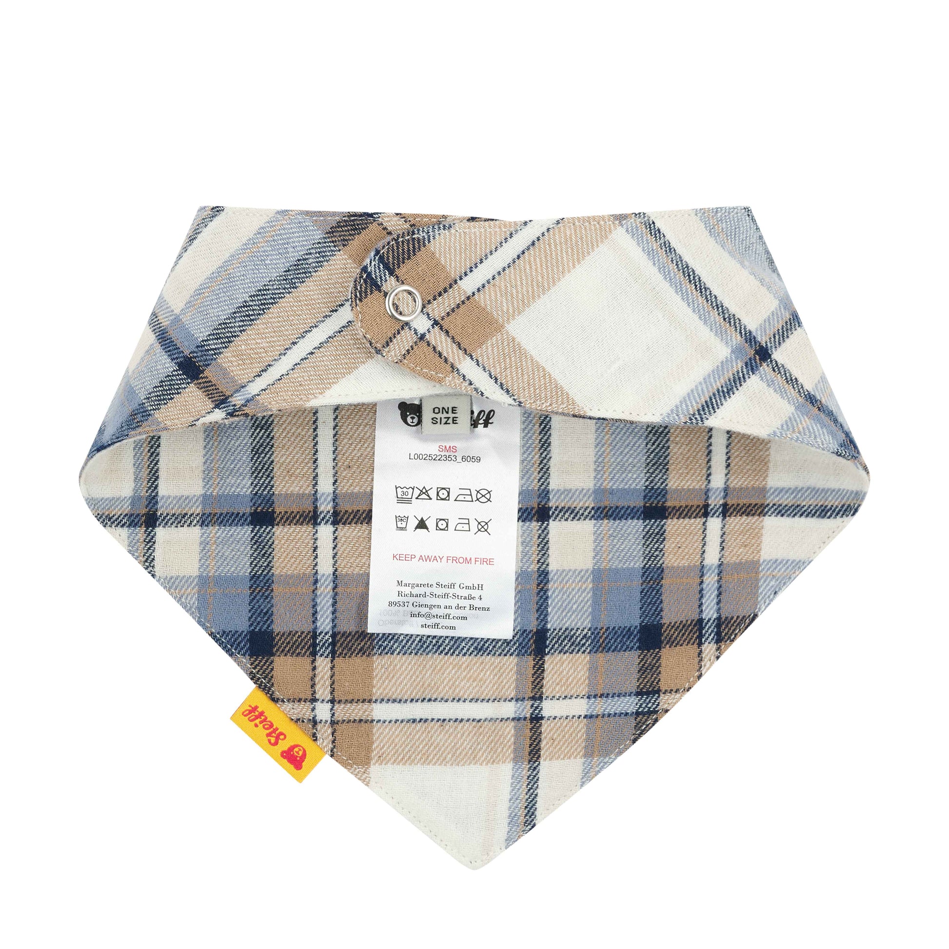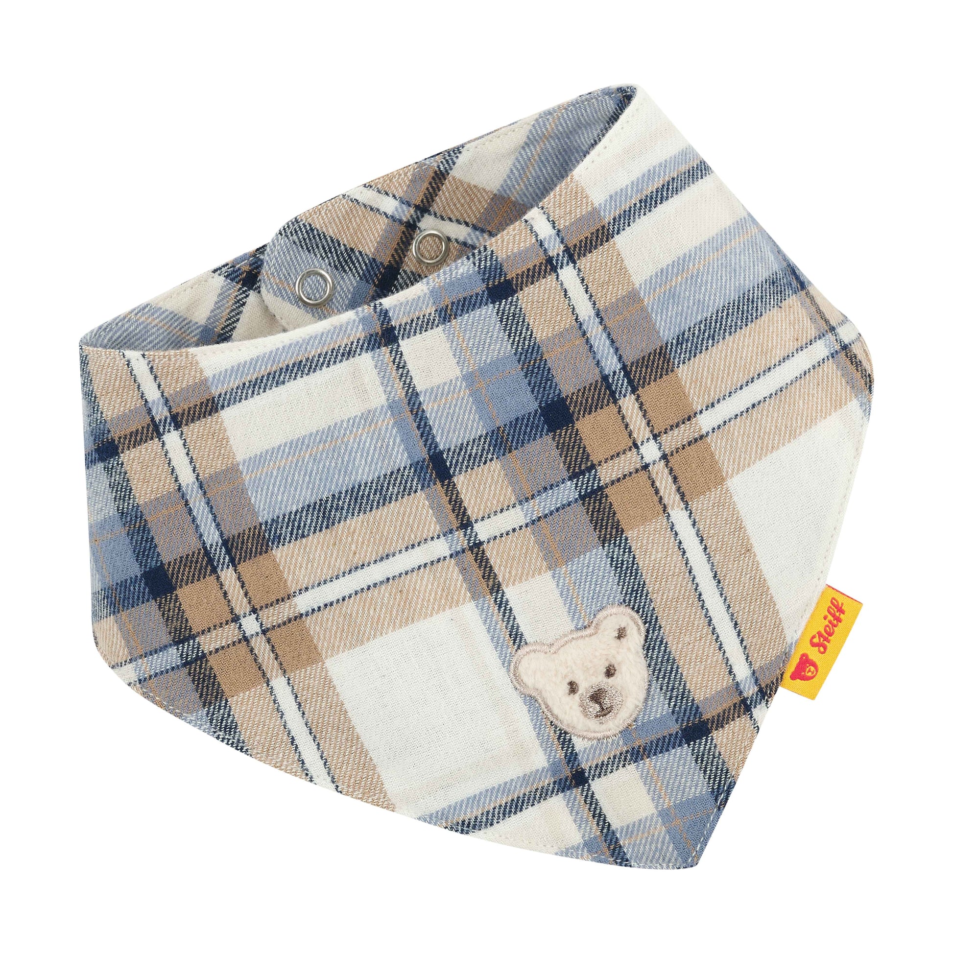 Ein kuscheliges Accessoire für stilbewusste Entdecker: Dieses Halstuch aus weichem Flanell in Blau sorgt für ein angenehm warmes Tragegefühl an kühlen Tagen. Das klassische Karomuster verleiht dem Look eine zeitlose Note, während die Druckknöpfe eine unkomplizierte Handhabung und Passform garantieren. Auf der Vorderseite setzt das Steiff Teddybärmotiv einen charmanten Akzent und schenkt ein Gefühl von Geborgenheit – ein liebevoll gestaltetes Lieblingsstück für kleine Charmeure.