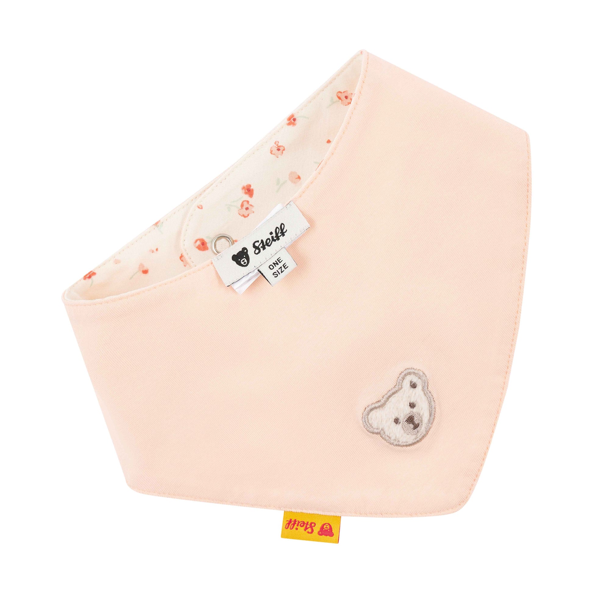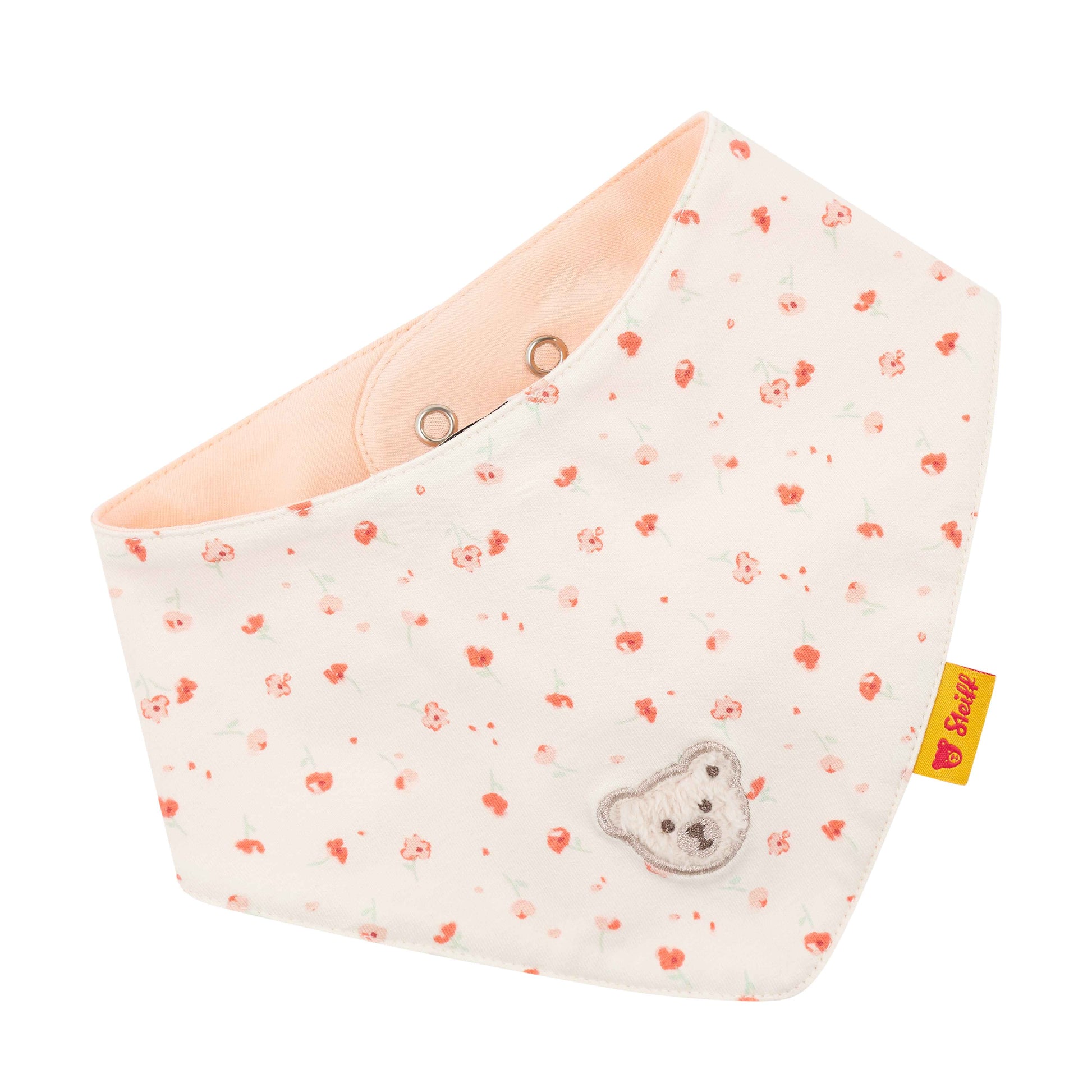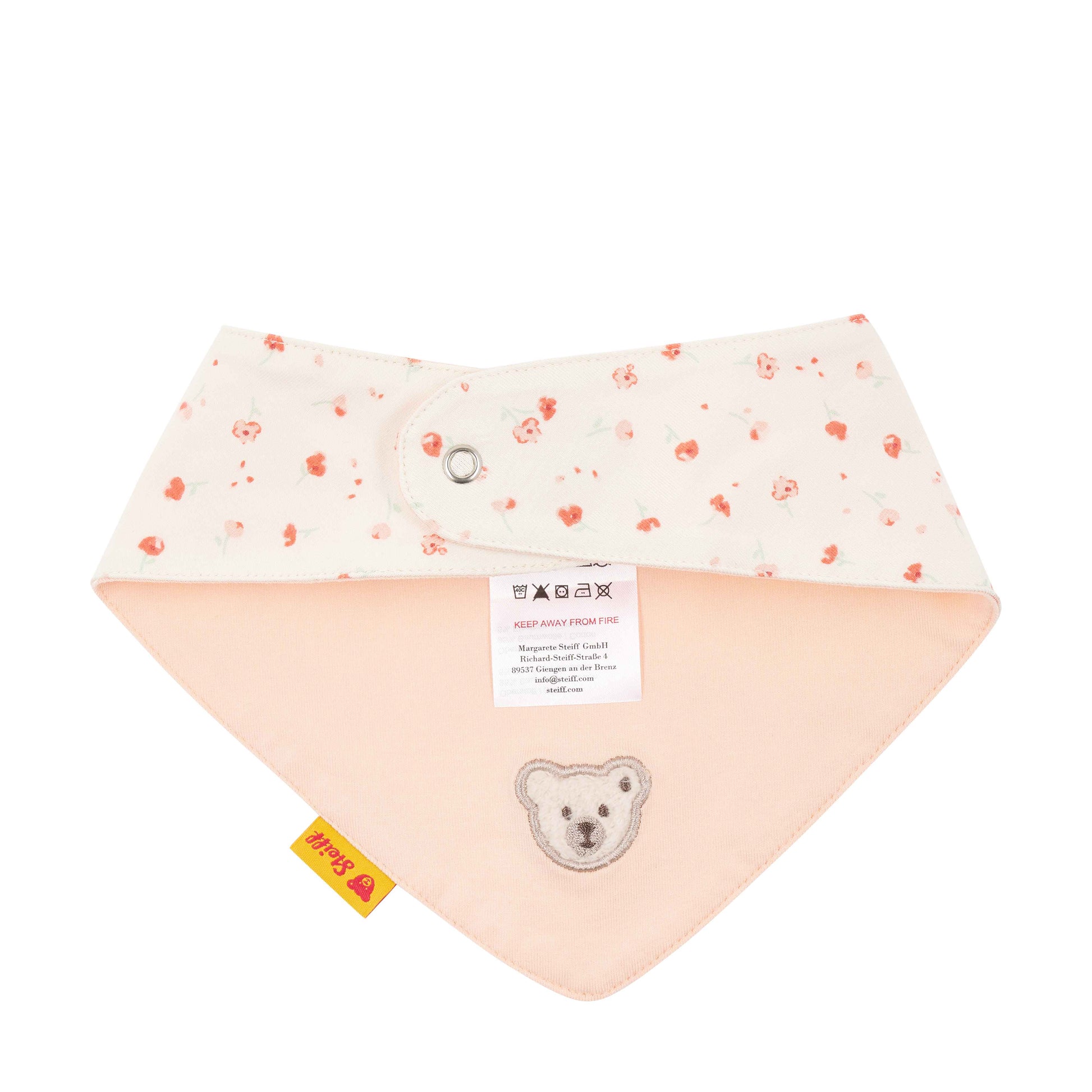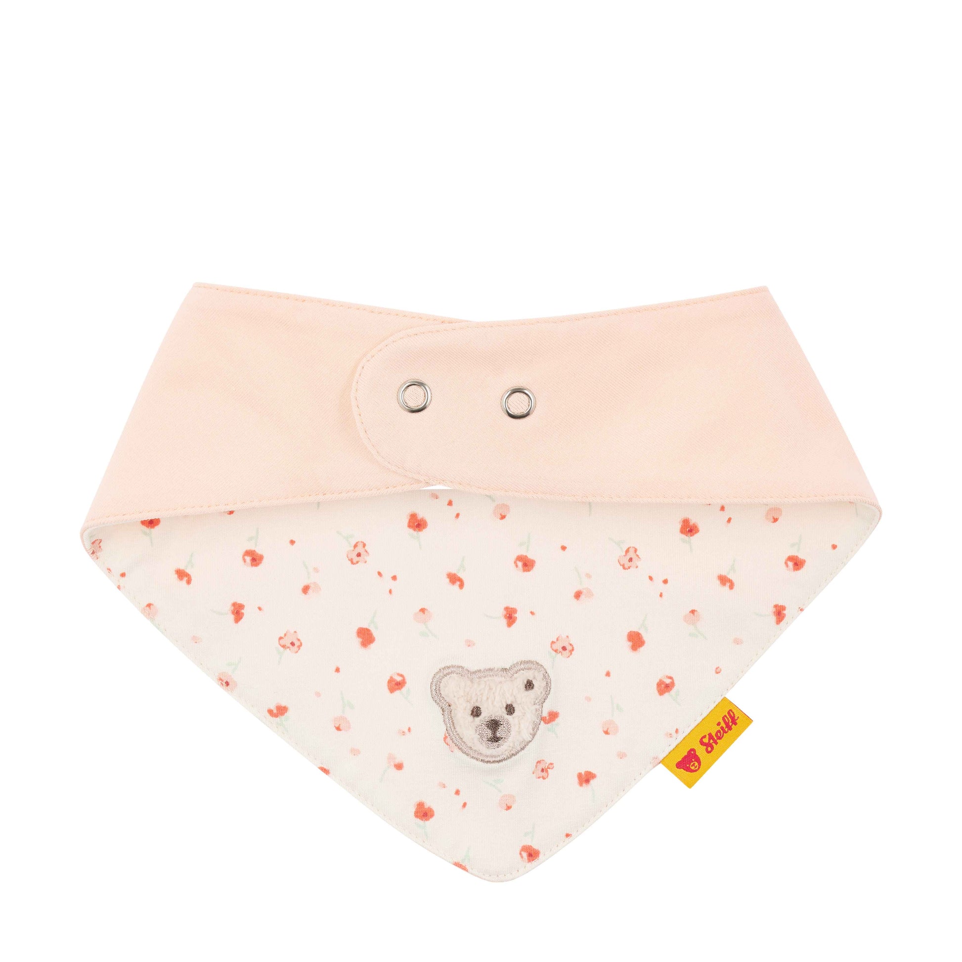 Dieses niedliche, wendbare Halstuch ist ein zauberhaftes Accessoire für kleine Strahlekinder. Auf der einen Seite ziert ein blumiges Muster in sanftem Beige den weichen Jersey-Stoff, während die andere Seite in zartem Pfirsich für einen hübschen Farbwechsel sorgt. Dank der Druckknöpfe mit zwei verstellbaren Weiten passt es sich optimal an und bietet einen gemütlichen Sitz. Das flauschige Steiff Teddybärmotiv verleiht dem Halstuch einen liebevollen Akzent – ein süßes Must-have für jeden Anlass.