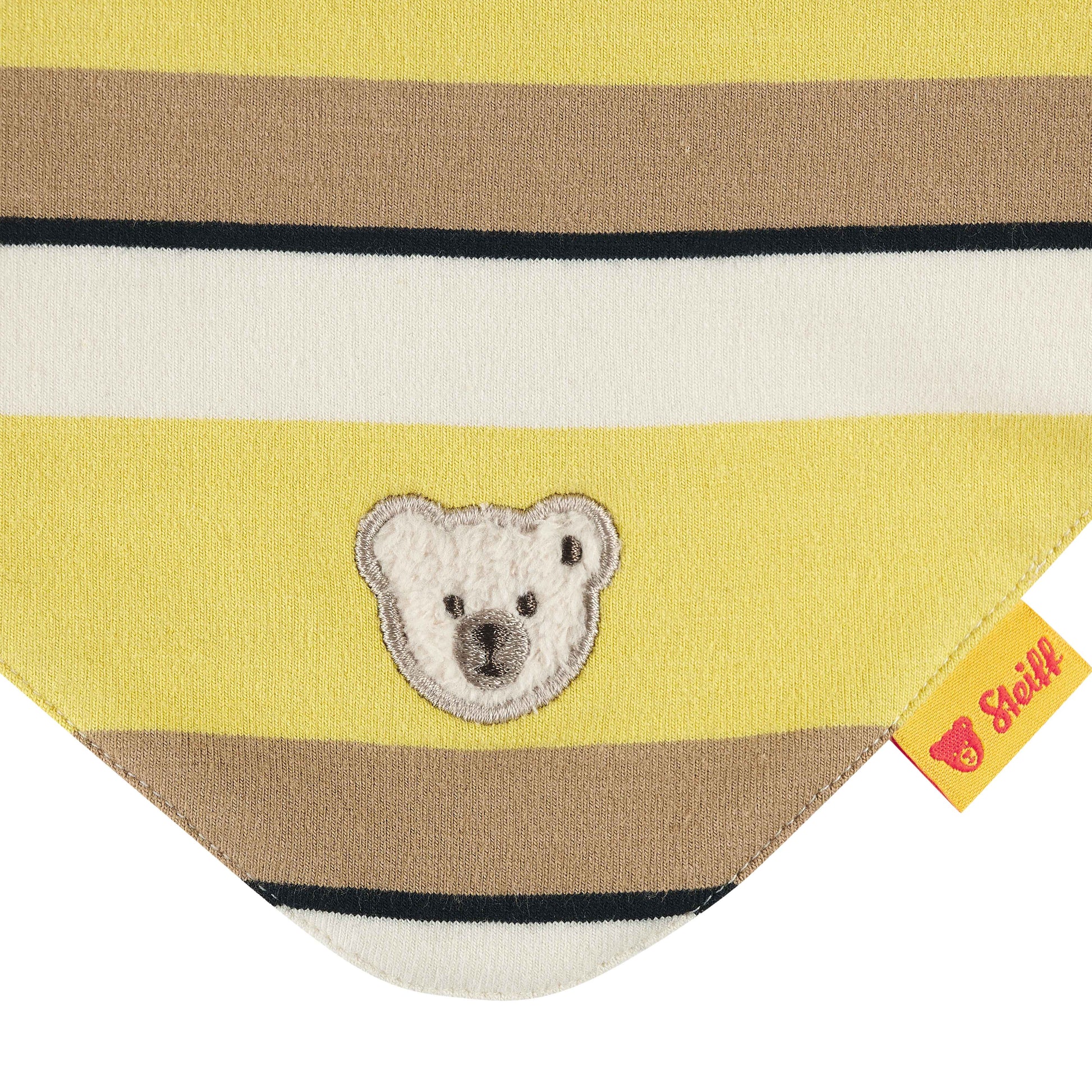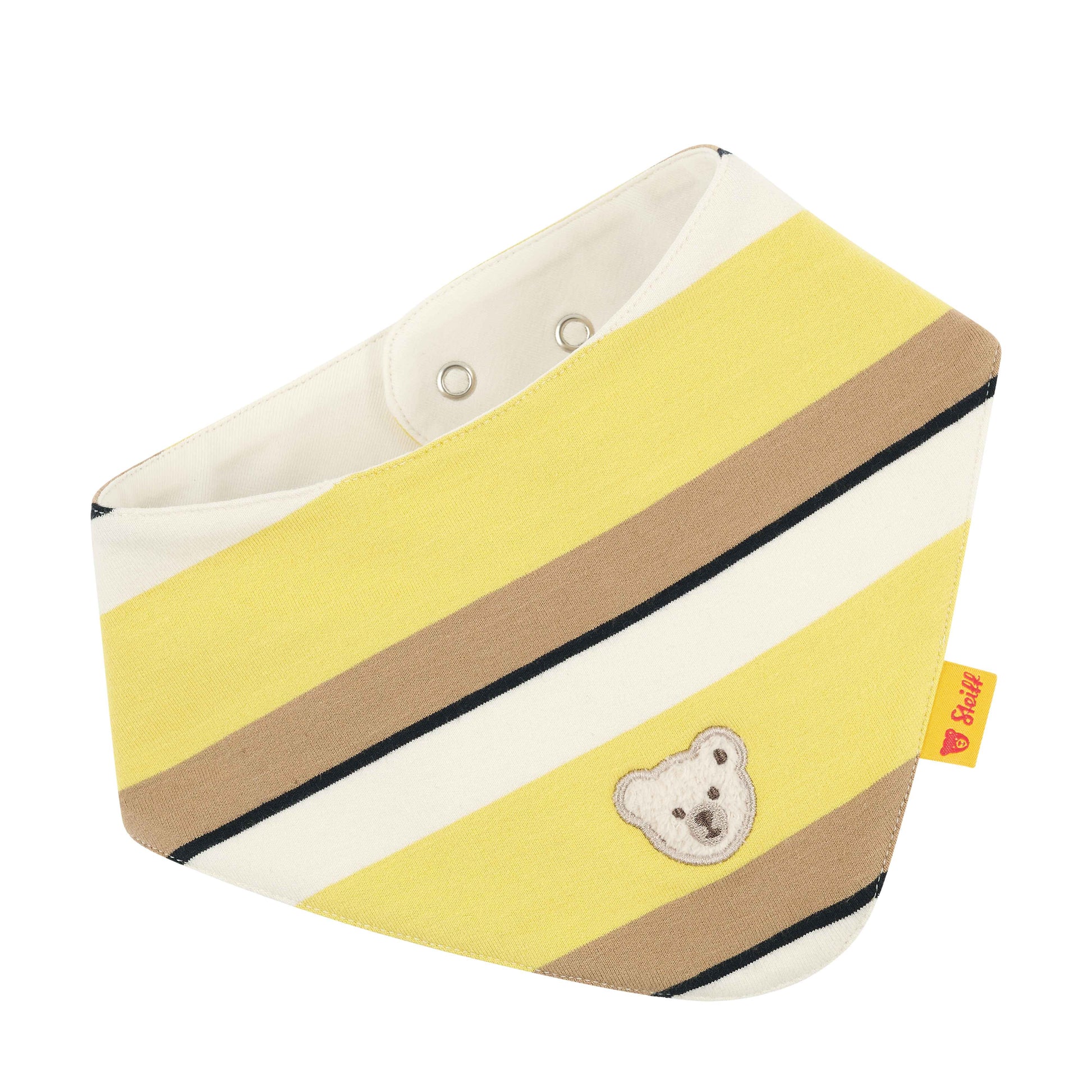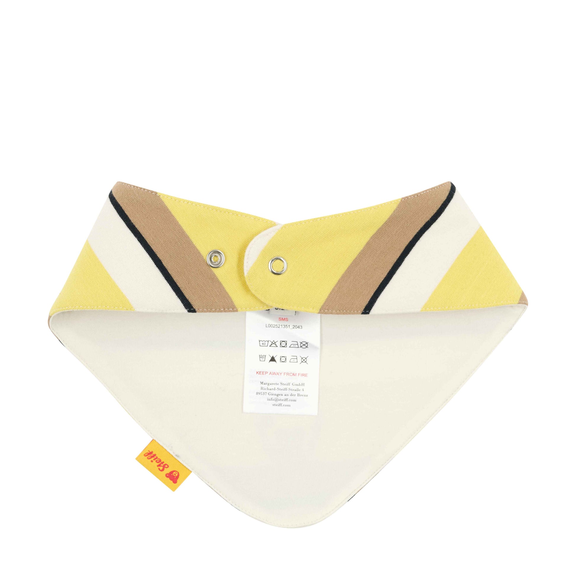 Kleine Abenteurer sind mit diesem weichen Halstuch aus kuscheligem Sweat Stoff bestens ausgestattet. Das fröhliche Blockstreifen-Design in Gelb bringt Farbe ins Spiel, während praktische Druckknöpfe für einen individuell verstellbaren Sitz sorgen. Auf der Vorderseite sorgt das klassische Steiff Teddybärmotiv für ein liebevolles Detail. Ein gemütlicher Begleiter für stilbewusste Weltentdecker an kühlen Tagen.