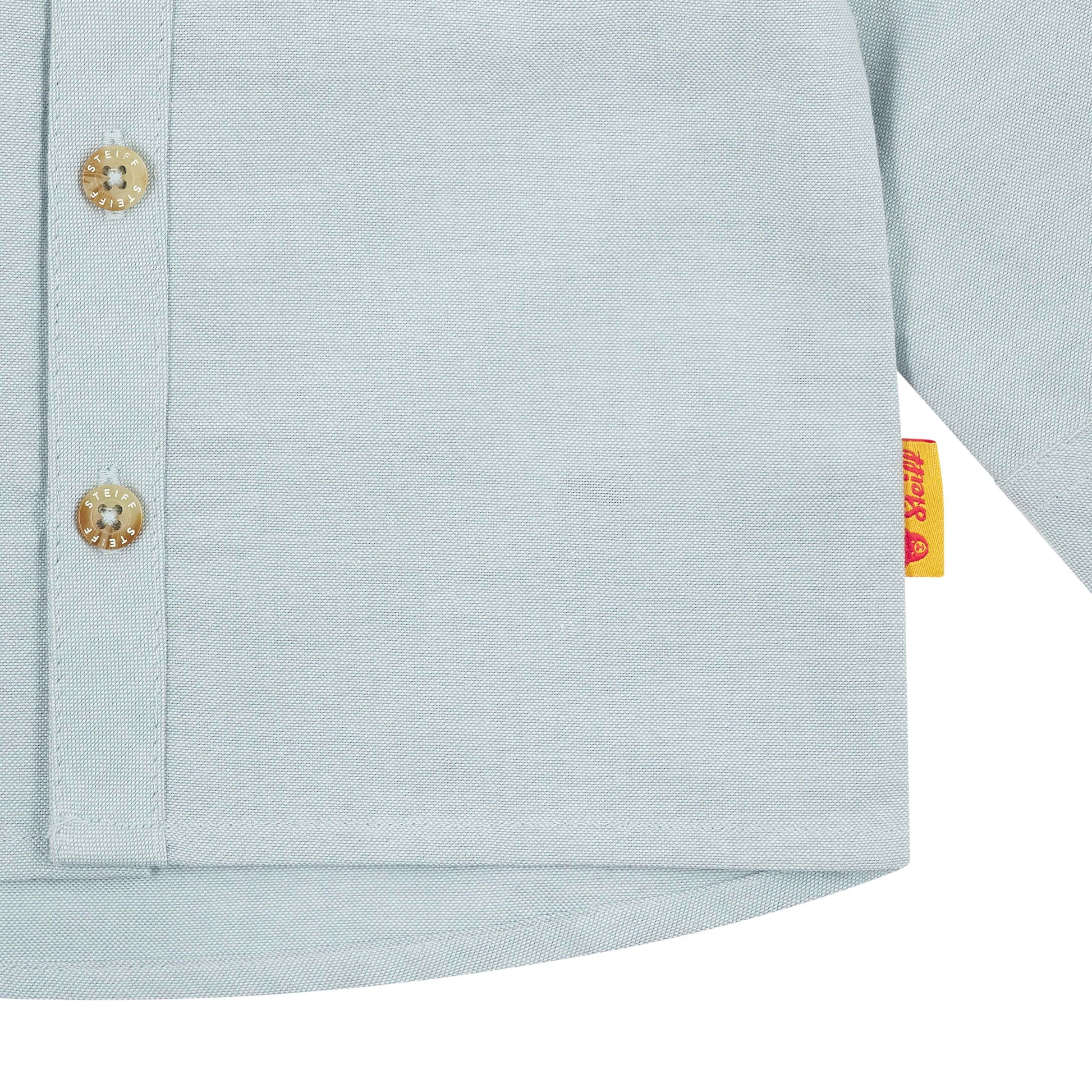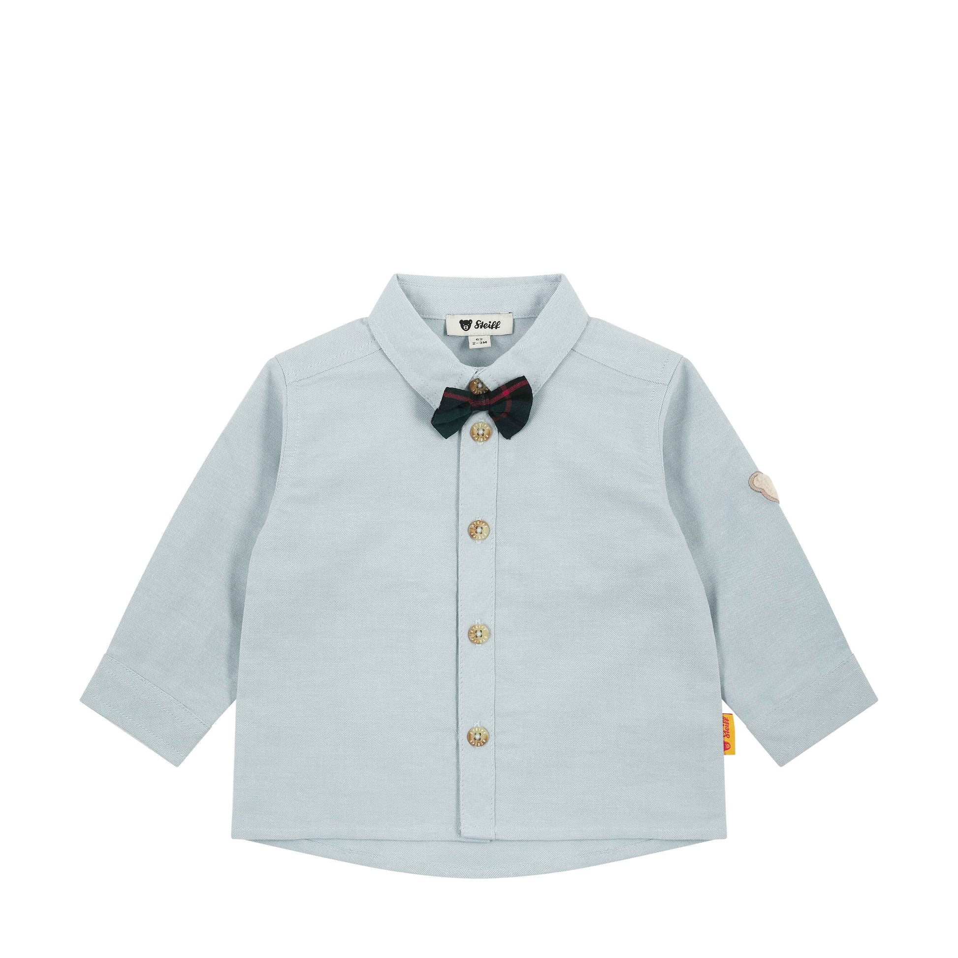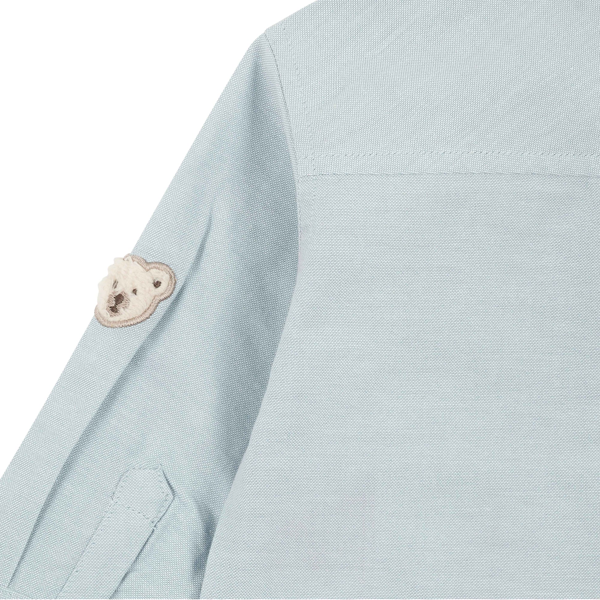 Für stilvolle kleine Charmeure ist dieses langärmelige Hemd aus feinem Oxford-Gewebe genau das Richtige. In klassischem Hellblau gehalten und mit geradem Schnitt versehen, bietet es einen eleganten Look bei gleichzeitig angenehmem Tragegefühl. Der traditionelle Hemdkragen sowie die durchgehende Knopfleiste machen das Hemd vielseitig kombinierbar – perfekt für festliche Anlässe und besondere Momente. Ein besonderes Highlight ist die passende Fliege im Karomuster, die für einen charmanten Auftritt sorgt. Das Steiff Teddybärmotiv am Ärmel rundet das Design mit einem liebevollen Detail ab – ein festliches Lieblingsstück mit Wohlfühlfaktor.