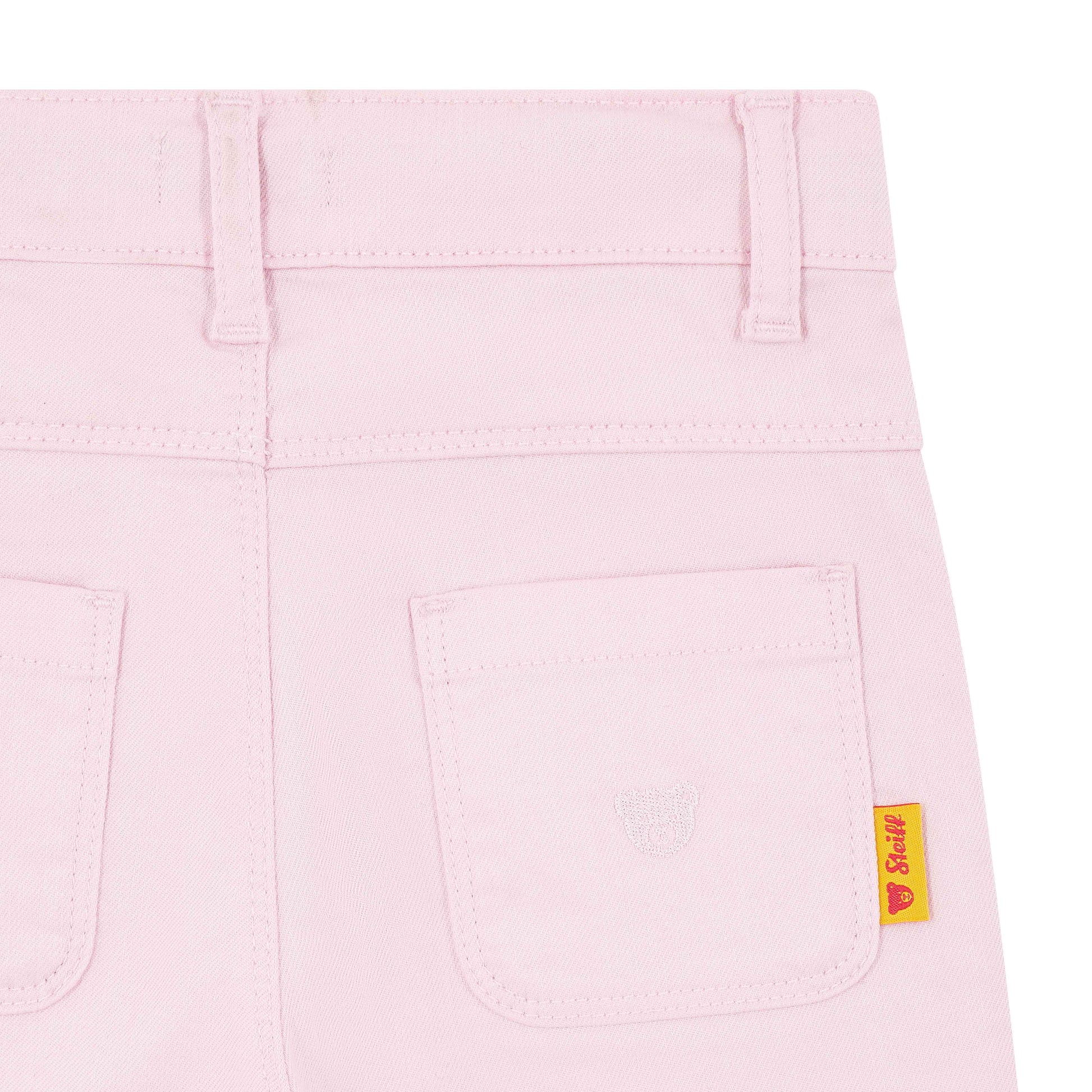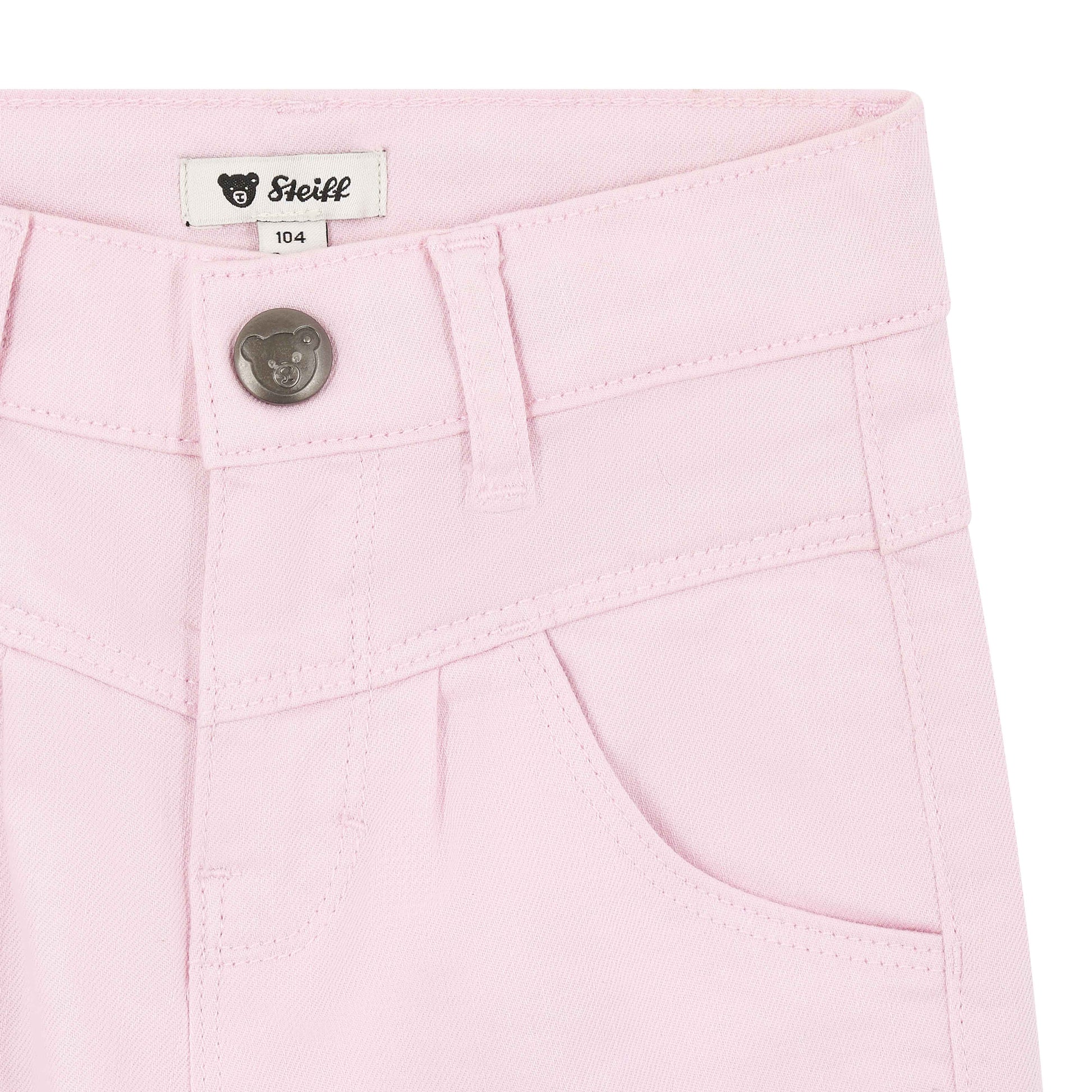Diese lässig geschnittene Hose in zartem Rosa ist ein stilvolles Must-have für kleine Mädchen. Die weiche, elastische Baumwollqualität sorgt für angenehmen Tragekomfort und viel Bewegungsfreiheit. Zarte Falten auf der Vorderseite verleihen der Hose eine elegante Note, während zwei Taschen vorn und hinten Platz für kleine Schätze bieten. Das flauschige Steiff Teddybärmotiv setzt einen niedlichen Akzent. Ein vielseitiges Kleidungsstück für jede Gelegenheit, das Stil und Komfort perfekt vereint.