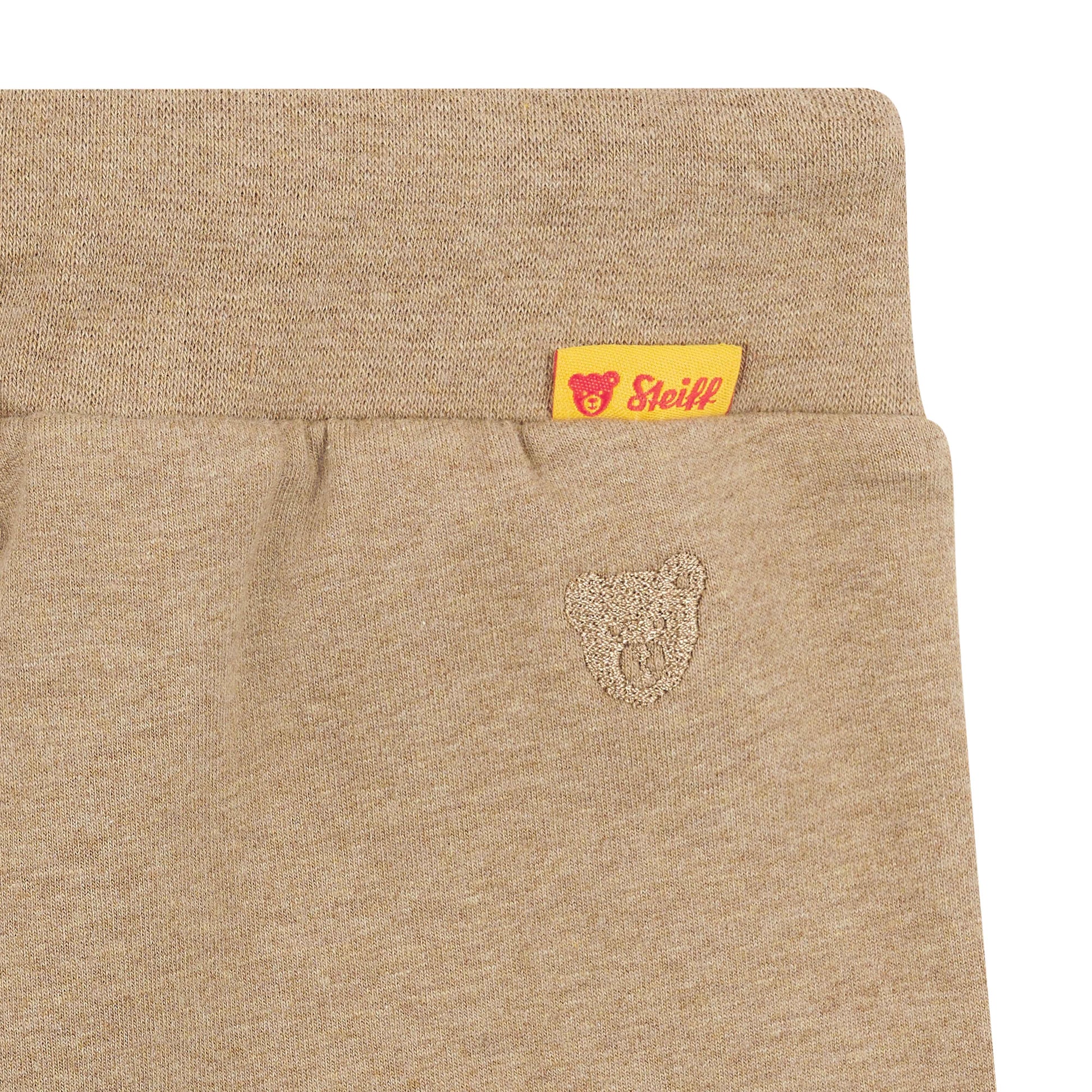 Coole Jungs sind mit dieser lässigen Jogginghose rundum bequem unterwegs. Der weiche Sweat Stoff bietet angenehmen Tragekomfort, während der lockere Schnitt und elastische Beinbündchen für viel Bewegungsfreiheit sorgen. Der flexible Bund mit Bindeband lässt sich individuell anpassen und sorgt für perfekten Sitz. Zwei seitliche Eingrifftaschen machen die Hose alltagstauglich und praktisch. Auf der Rückseite rundet das klassische Steiff Teddybärmotiv das Design charmant ab – ein gemütlicher Begleiter für aktive Tage.