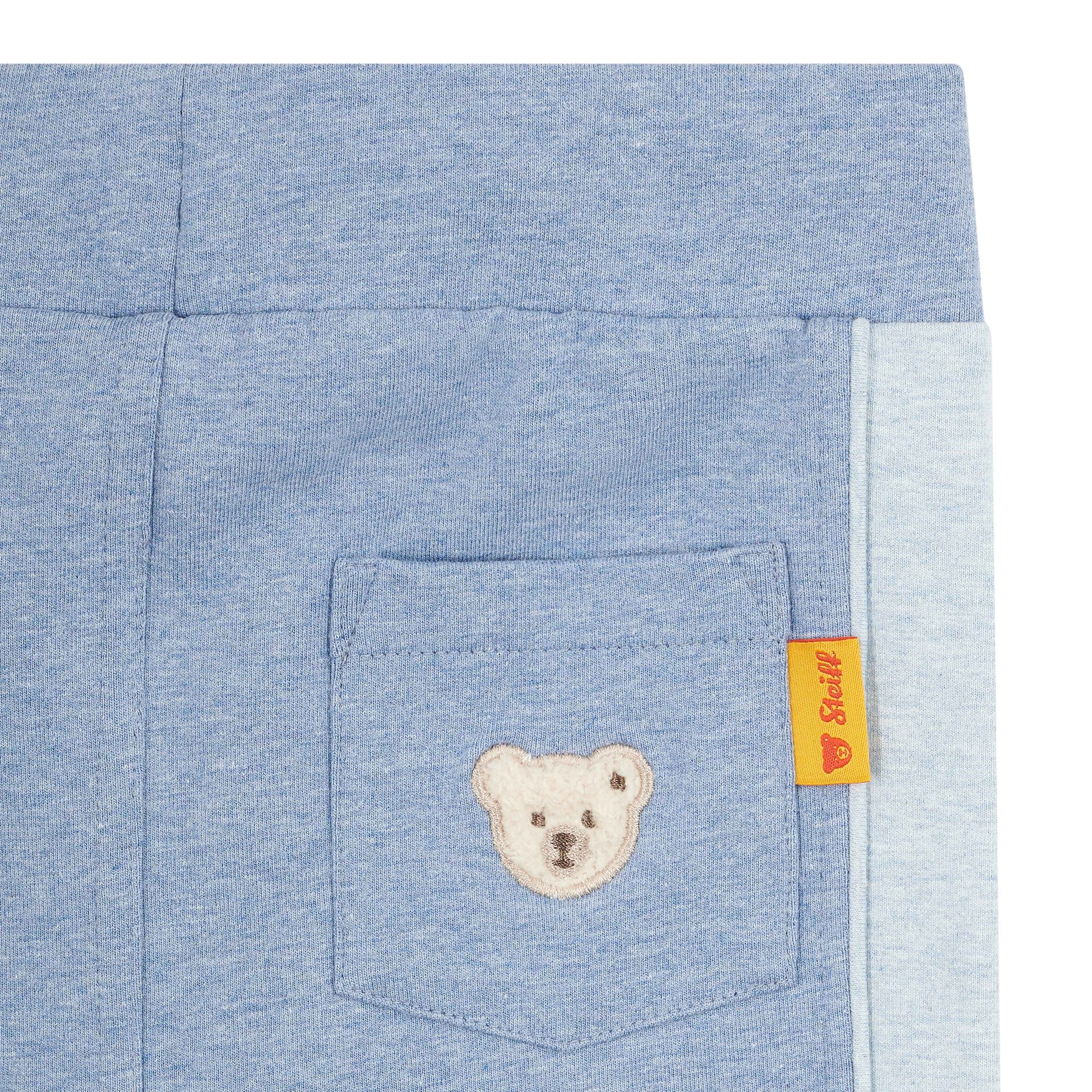 Diese gemütliche Jogginghose in schönem Mittelblau begleitet kleine Abenteurer auf all ihren Entdeckungstouren. Der elastische Bund mit kontrastfarbigen Zugbändern sorgt für einen bequemen Sitz und viel Bewegungsfreiheit, während die kontrastreichen Seitenstreifen einen sportlichen Look verleihen. Eine praktische aufgesetzte Tasche auf der Rückseite bietet Platz für kleine Schätze, und das liebenswerte Steiff Teddybärmotiv macht die Hose zum kuscheligen Wohlfühl-Favoriten. Ein lässiges Lieblingsstück für jeden Tag!