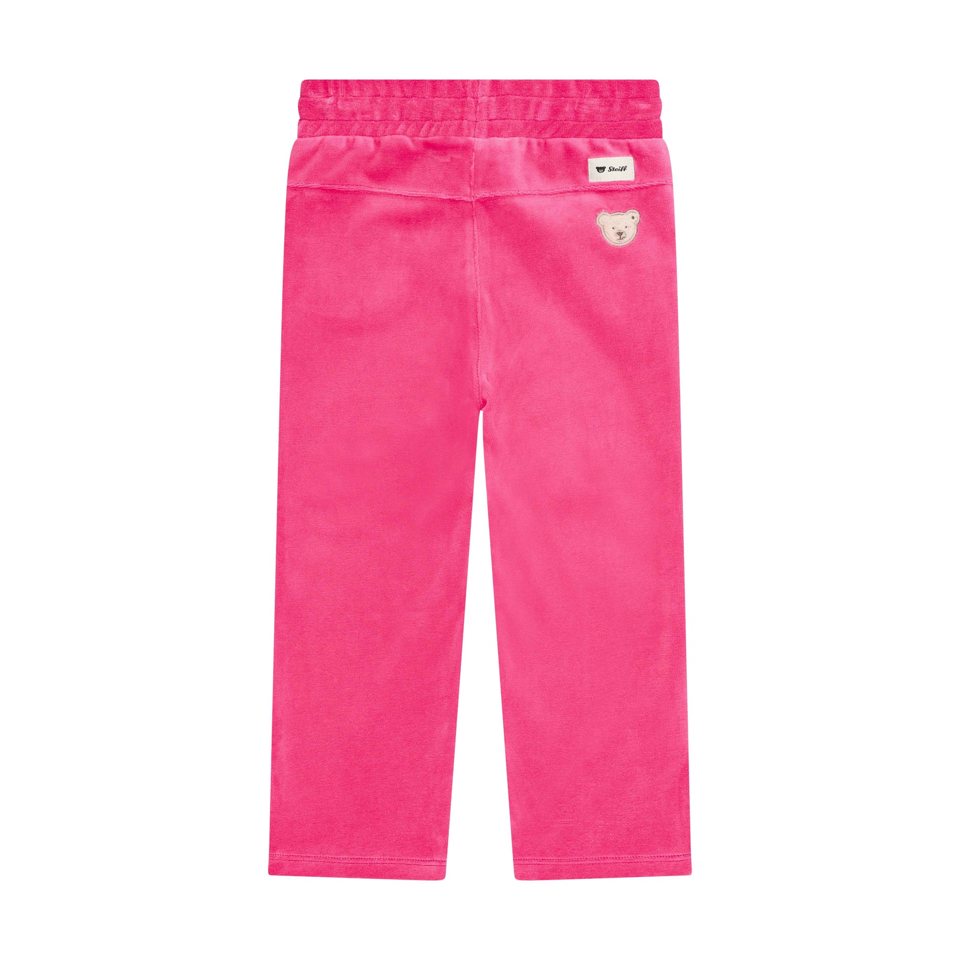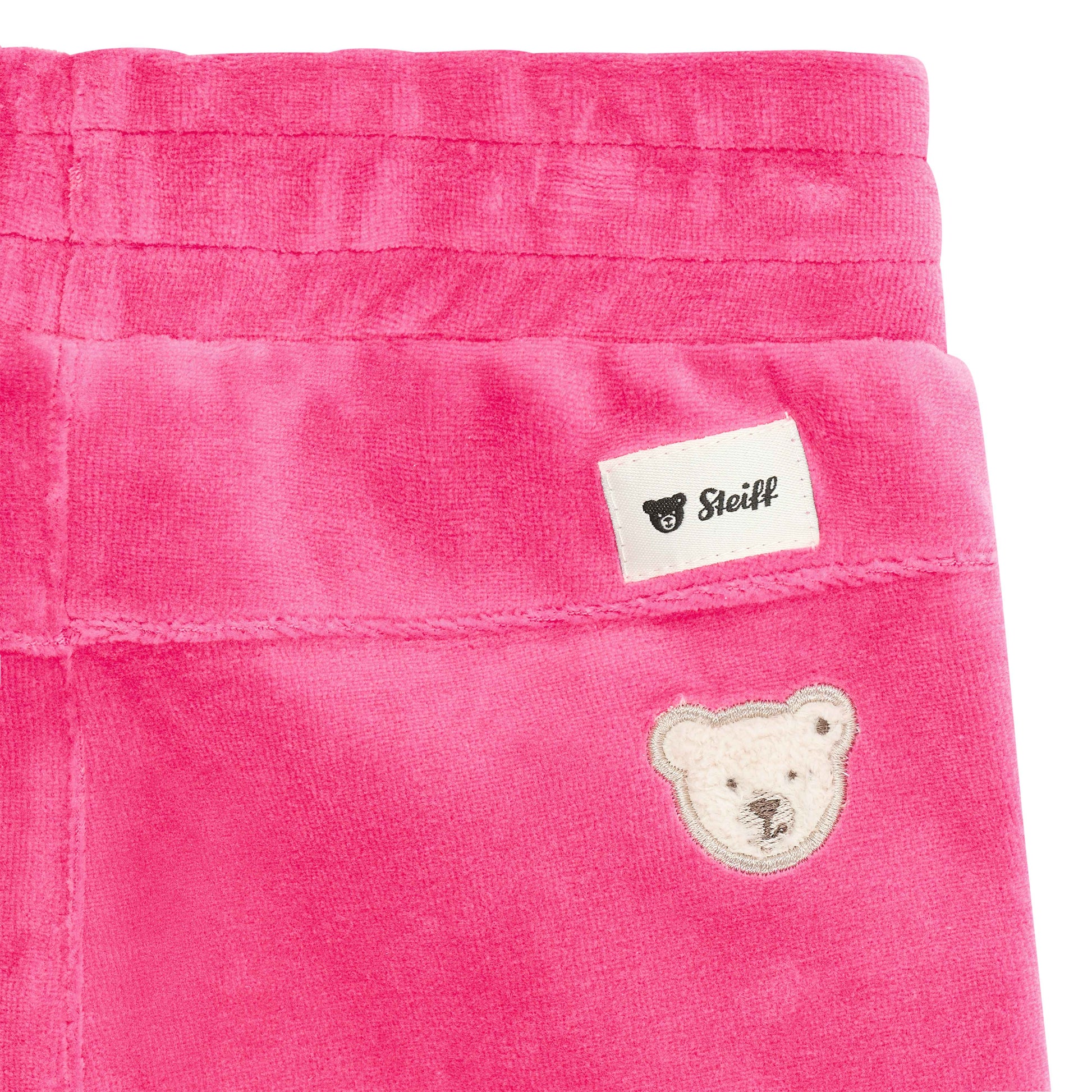 Diese kuschelige Jogginghose in fröhlichem Pink ist perfekt für kleine Entdeckerinnen, die sie bequem und zugleich stilvoll mögen. Das weiche Veloursmaterial schmiegt sich sanft an und sorgt für ein wohliges Tragegefühl. Der elastische Bund mit süßen Zierbändchen bietet einen perfekten Sitz und macht jedes Abenteuer mit. Zwei praktische Schlitztaschen vorn bieten Platz für kleine Schätze, während das liebevolle Steiff Teddybärmotiv der Hose einen besonderen Charme verleiht. Ein gemütliches Lieblingsstück für entspannte Tage voller Spiel und Spaß