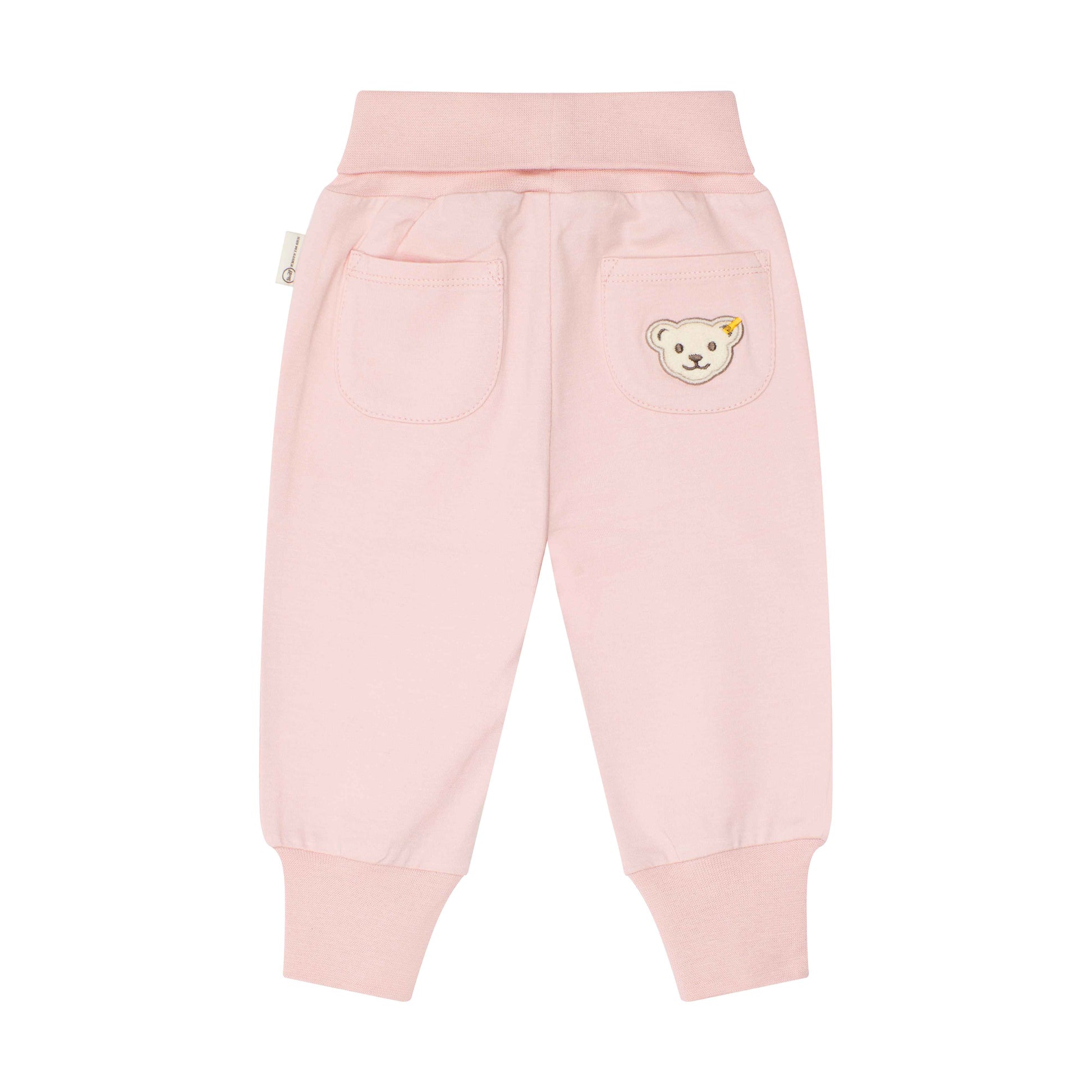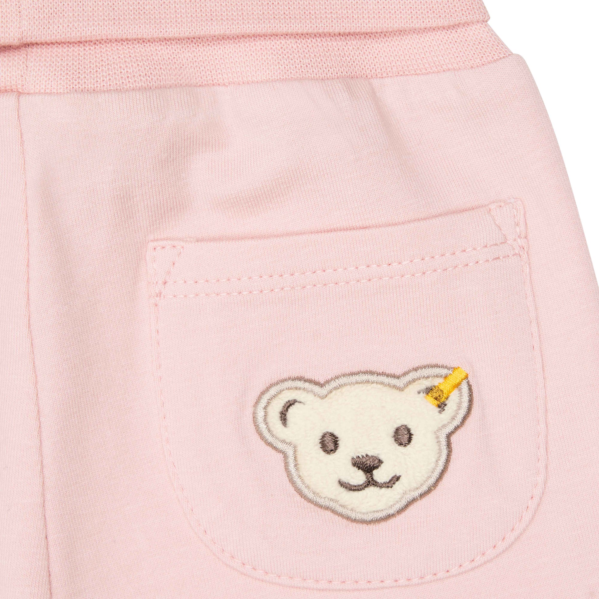 Anschmiegsam und in einer bequemen Passform gearbeitet, gehört die Jogginghose aus weichem Jersey zur Grundausstattung der kleinsten Weltentdecker. Das flexible Material und ein sanfter Schlupfbund begleiten munteres Spielen wie auch ausgiebiges Entspannen mit viel Bewegungsfreiheit. In dem gemütlichen Allrounder lässt sich wunderbar einschlafen. Rosé ist auch festlich kombinierbar. Für alle Fälle ist ein flauschiges Steiff Teddybärmotiv auf der hinteren Tasche überall mit dabei. So niedlich!