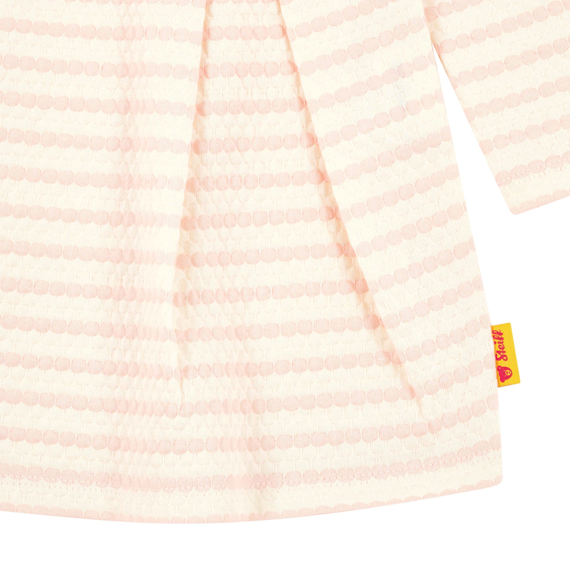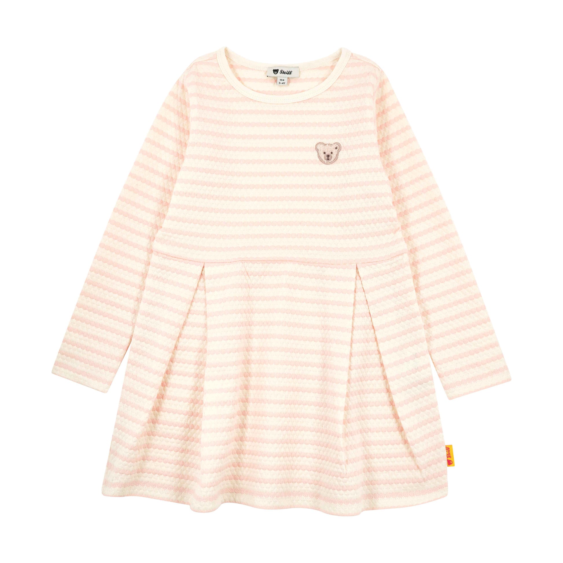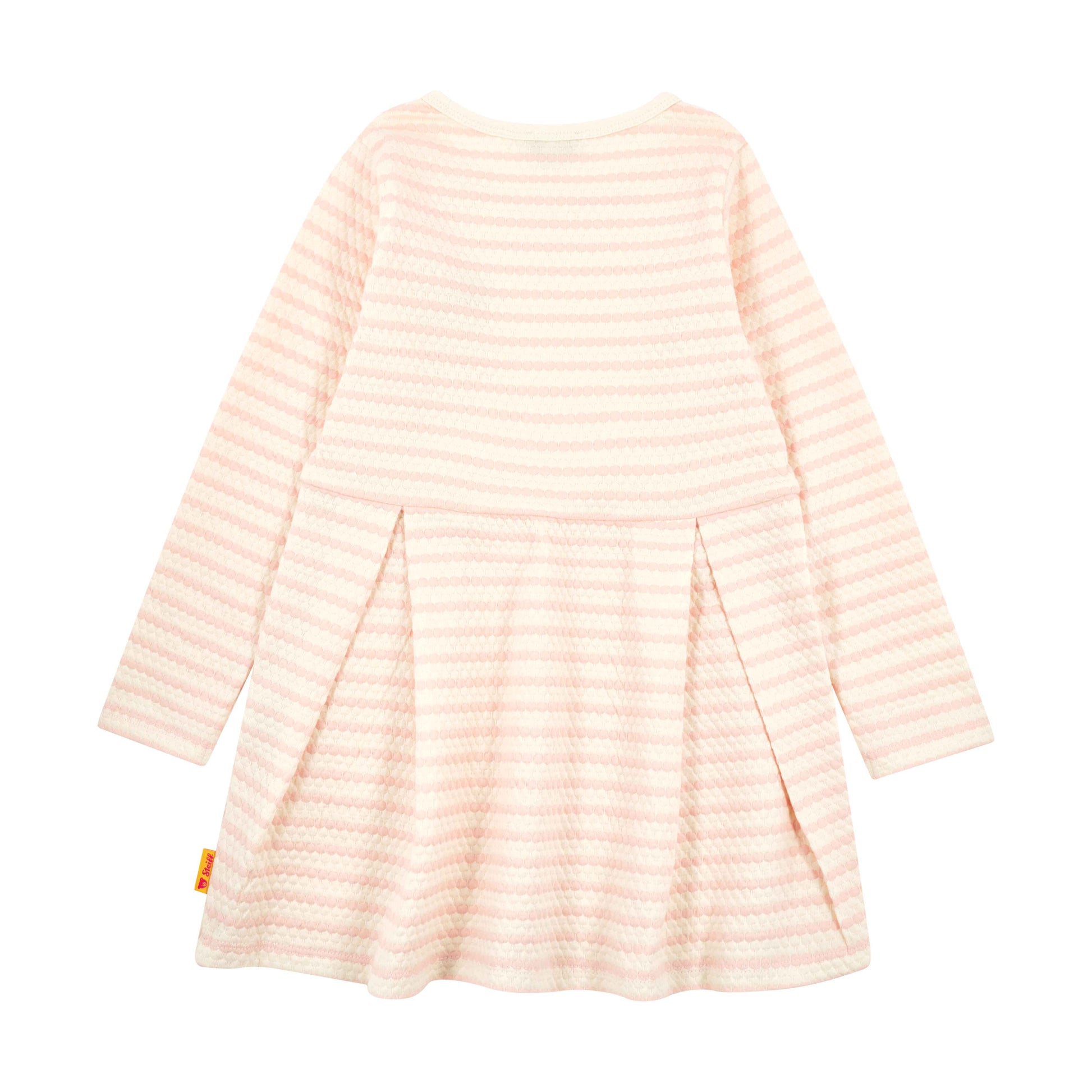 Sanft und anschmiegsam begleitet dieses Langarmkleid kleine Weltentdeckerinnen durch den Tag. Der strukturierte Single-Jersey mit feinen Streifen in zartem Rosé trägt sich angenehm weich und fällt dank angesetztem Rockteil mit gelegten Falten besonders schön schwingend – für extra Bewegungsfreiheit bei jedem Schritt.