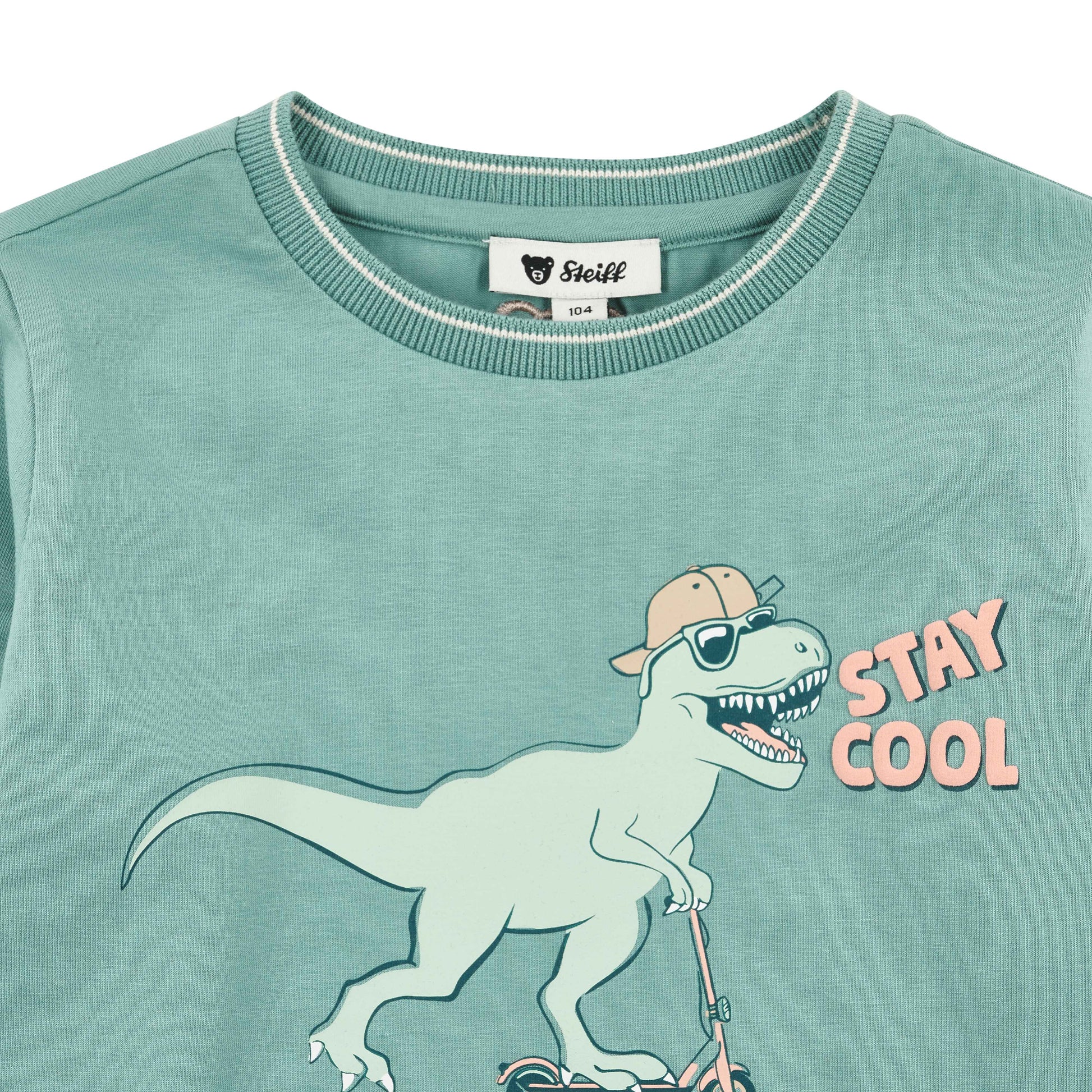 Dieses Langarmshirt begeistert mit einer ordentlichen Portion Coolness. Der große Dino-Print mit dem Statement „Stay Cool“ setzt ein fröhliches Zeichen und macht das Shirt zum echten Hingucker. Der angenehm weiche Single Jersey sorgt für ein rundum komfortables Trageerlebnis, das Kinder durch den Tag begleitet.