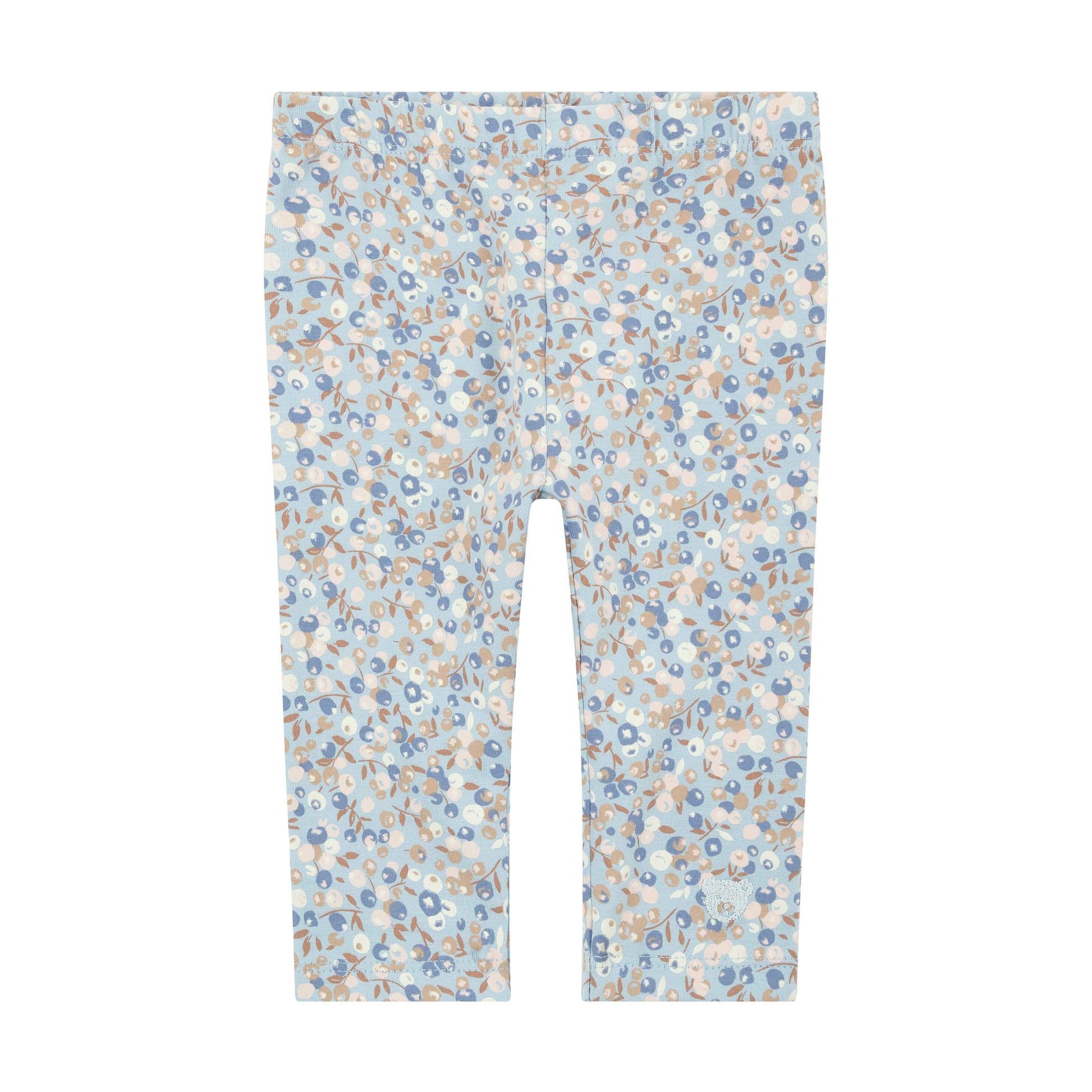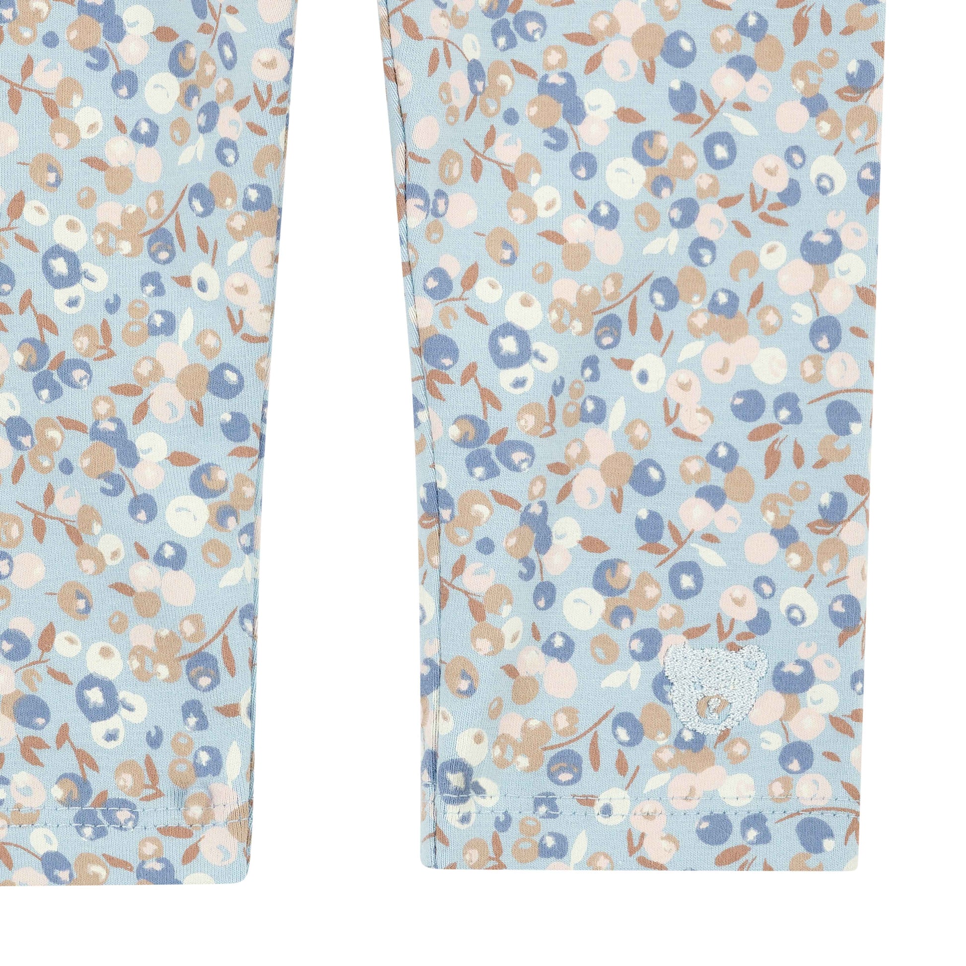 Kleine Entdeckerinnen erleben in dieser gemusterten Leggings fröhliche Wohlfühlmomente. Der weiche Single Jersey in Hellblau liegt sanft auf der Haut und macht jede Bewegung mit. Der schmale Schnitt sorgt für angenehmen Sitz, während ein zartes Allover-Blumenmuster dem Look eine verspielte, mädchenhafte Note verleiht. Als liebevolles Detail ziert das klassische Steiff Teddybärmotiv in gestickter Form das Hosenbein – ein vertrautes Zeichen für Geborgenheit, das große Steiff Fans begeistert.
