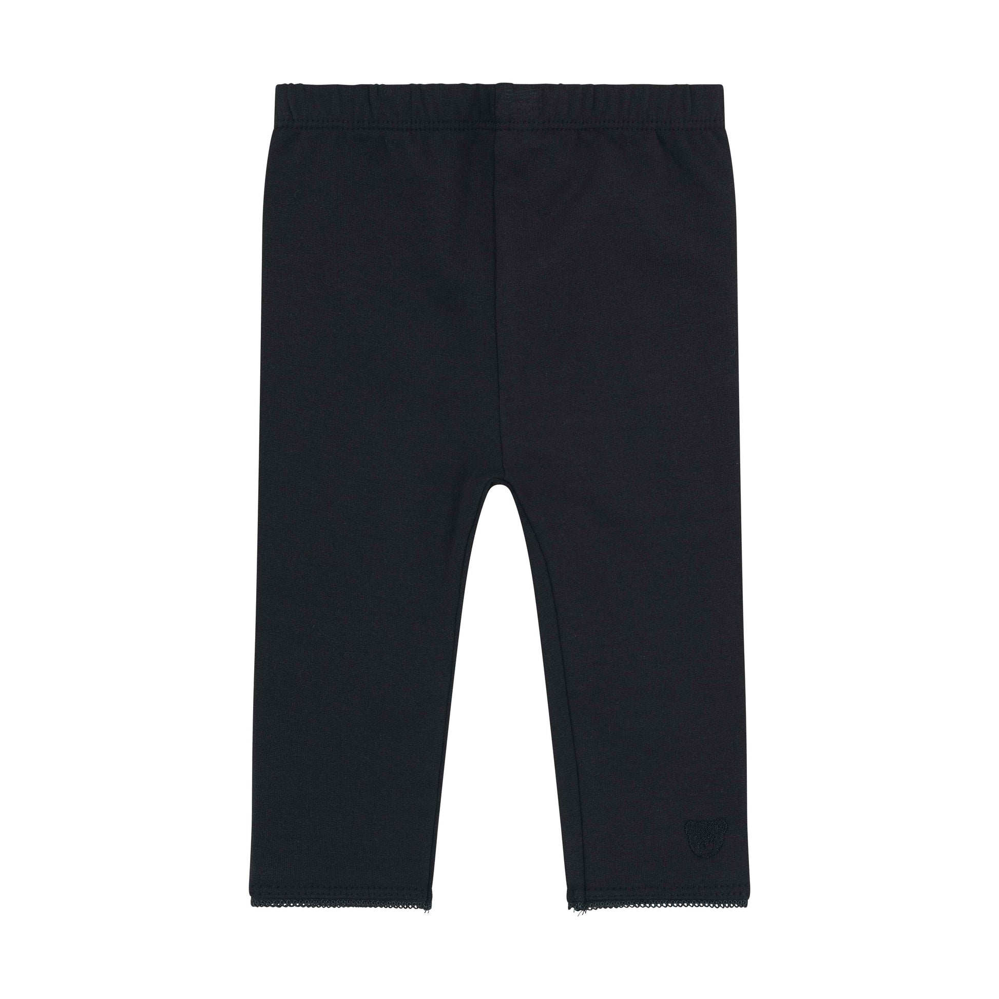 Diese dunkelblaue Leggings ist ein gemütliches Lieblingsstück für aktive kleine Stilikonen. Der schmale Schnitt schmiegt sich angenehm an und bietet mit elastischem Softbund jede Menge Bewegungsfreiheit. Verspielte Abschlüsse mit gewelltem Saum verleihen dem Look eine zarte Note. Das dezente Steiff Teddybärmotiv am Hosenbein setzt ein charmantes Highlight.