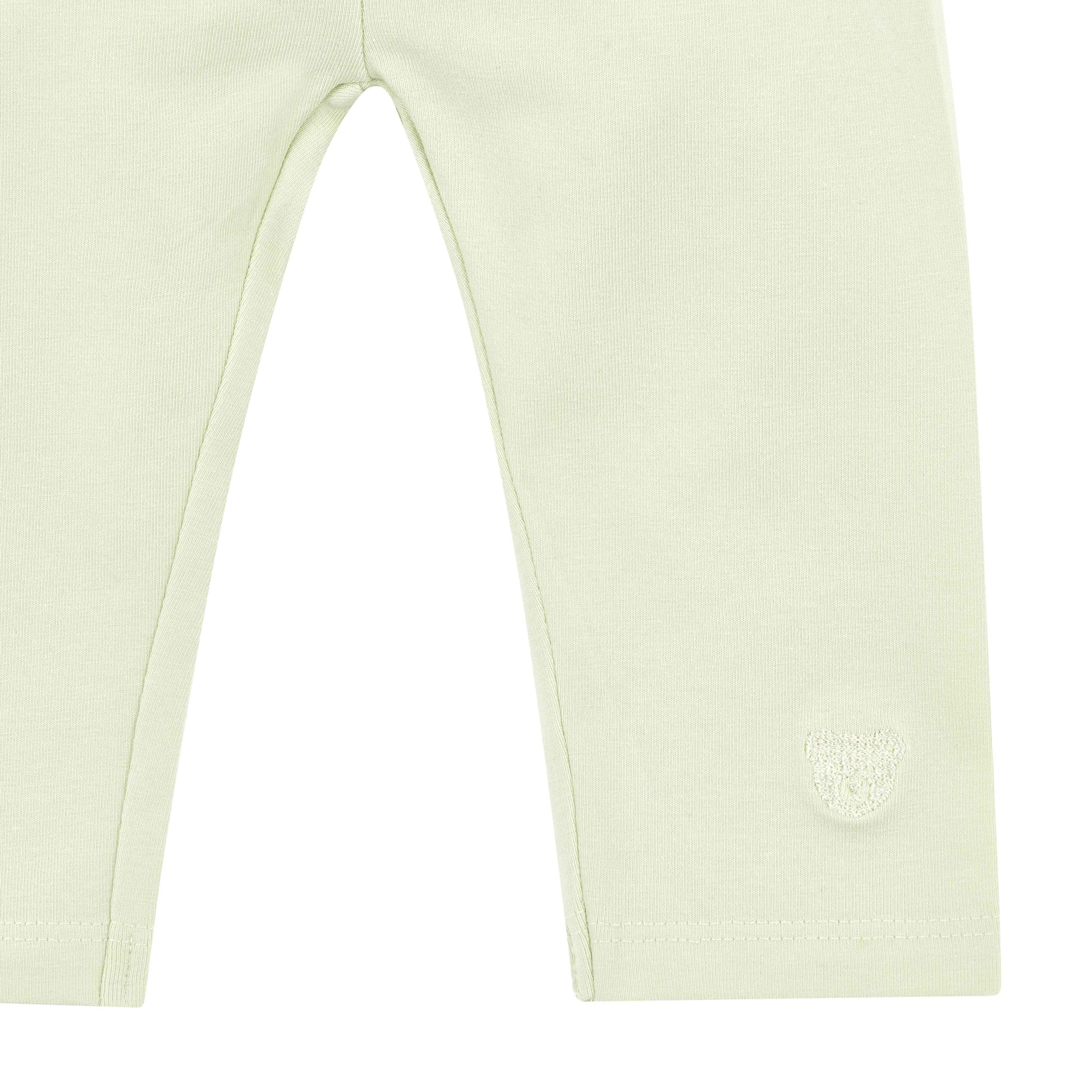 Für einen charmanten Akzent sorgt das ton-in-ton gehaltene Steiff Teddybärmotiv am Beinabschluss, das als kleines Markenzeichen überall mit dabei ist ✨ Die sanfte Hellgrün-Nuance macht die Leggings zu einem vielseitigen Kombiteil für viele Lieblingslooks. Ideal zum Bewegen, Entdecken und Glücklichsein.