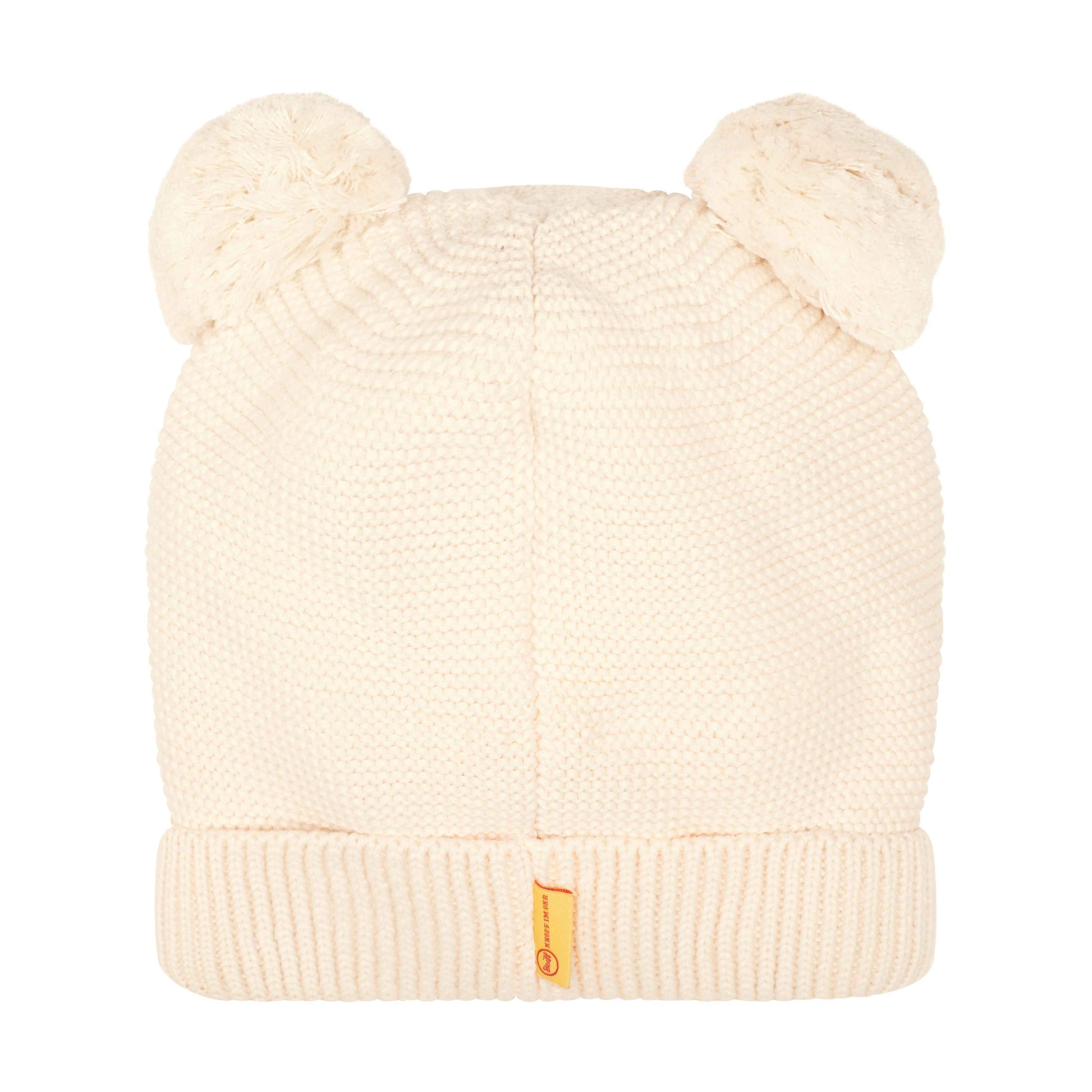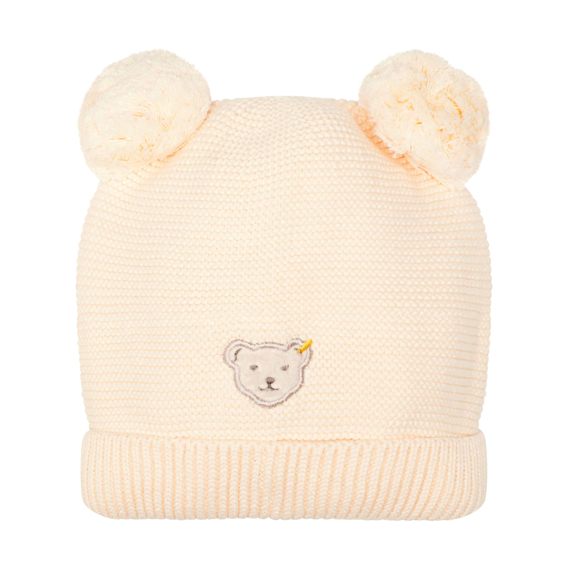 Stilbewusste Weltentdeckerinnen genießen Ausflüge bei Wind und Wetter mit dieser Mütze mit zwei großen Bommeln. Für ein kuscheliges Tragegefühl und gemütliche Wärme sorgt pflegeleichter Baumwollstrick. Ein flexibler Rippumschlag garantiert bequemen Sitz und schmiegt sich perfekt an jedes Köpfchen an. Wollweiß passt zu Farbklassikern wie auch zu fröhlichen Trendfarben und wird auch zu festlichen Outfits kombiniert. Für alle Fälle hält ein flauschiges Steiff Teddybärmotiv auf der Stirnmitte die Augen für Ihre Kleine offen.