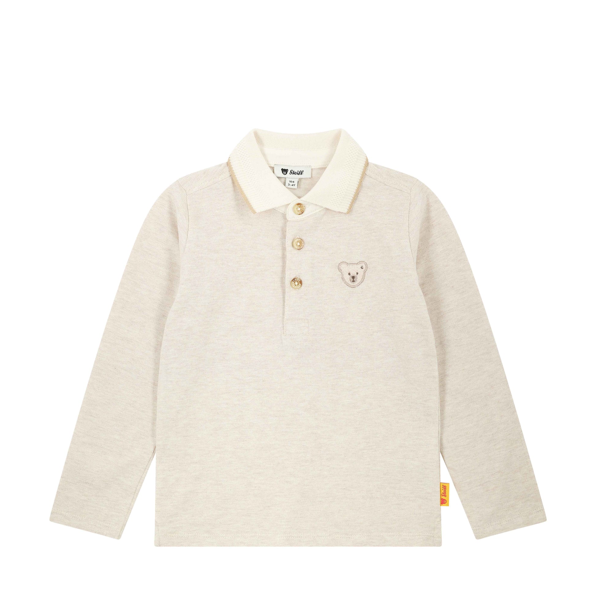 Kleine Gentlemen genießen in diesem langärmeligen Poloshirt stilvollen Komfort im Alltag. Der klassische Piqué sorgt für eine feine Struktur und angenehmen Tragekomfort, während der gerade Schnitt für viel Bewegungsfreiheit beim Spielen und Toben sorgt. Der weiße Polokragen und die Knopfleiste verleihen dem Shirt eine sportlich-elegante Note. Auf der Brust rundet das klassische Steiff Teddybärmotiv das Design charmant ab – ein zeitloses Basic für stilbewusste Jungs.