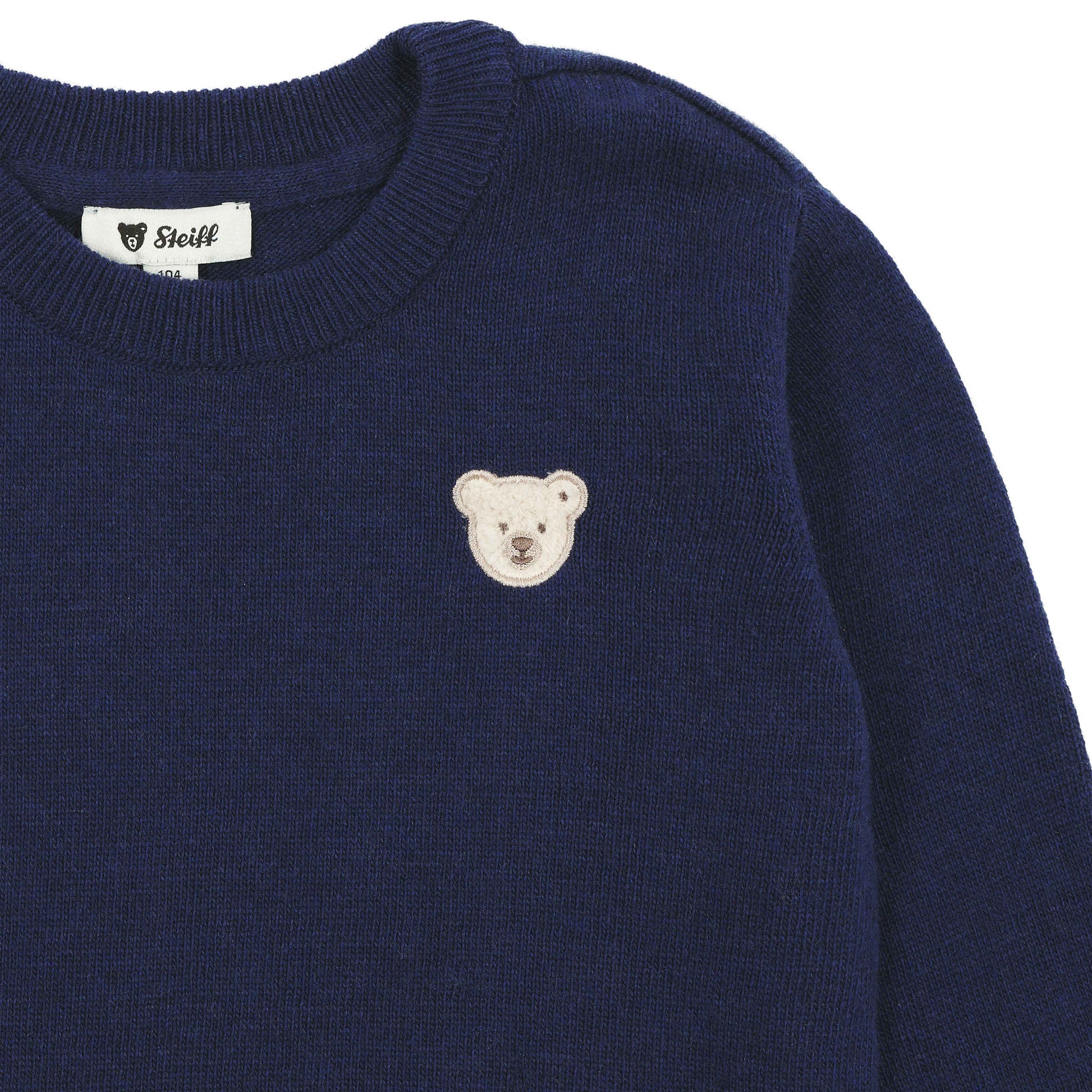 Dieser kuschelige Strickpullover in klassischem Navyblau hält kleine Entdecker wunderbar warm und bietet gemütlichen Tragekomfort. Das weiche Strickmaterial schmiegt sich angenehm an und sorgt für wohlige Wärme, während der gerippte Halsausschnitt, Saum und die Ärmelbündchen perfekten Sitz garantieren. Abgerundet wird der zeitlose Look durch das liebenswerte Steiff Teddybärmotiv, das für Geborgenheit steht und den Pullover zu einem echten Wohlfühl-Favoriten macht. Ein vielseitiges Lieblingsstück für jeden Tag!