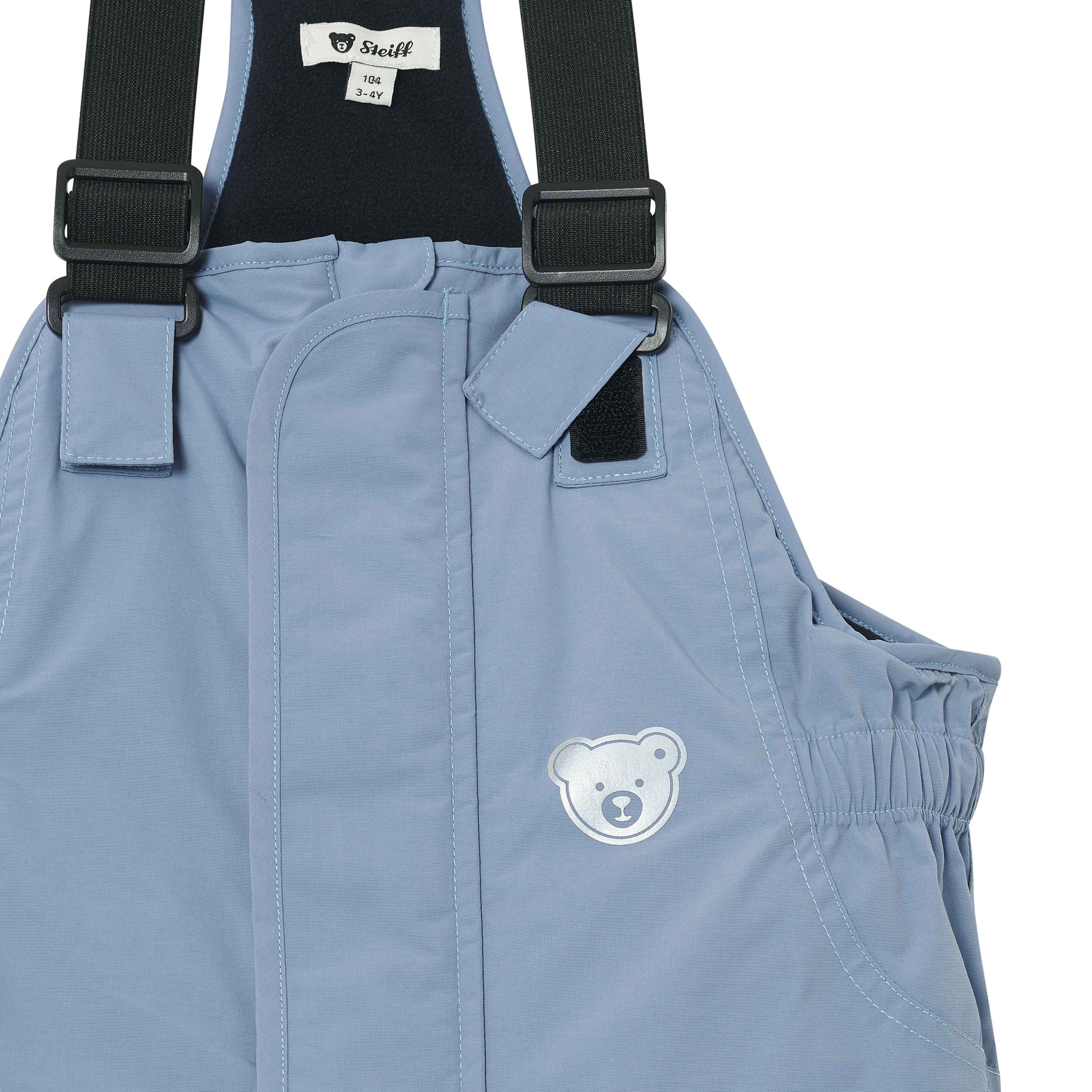 Gut geschützt und dabei stilvoll unterwegs – diese blaue Skihose ist der perfekte Begleiter für abenteuerlustige Wintermädchen. Dank einer ökologischen BIONIC-FINISH®ECO Imprägnierung ohne Weichmacher, ist das Obermaterial wind- und wasserabweisend sowie atmungsaktiv. Mit einer Wassersäule von 8000 mm ist die Schneehose ideal für ausgelassenes Toben im Schnee. Verstellbare Träger und ein Reißverschluss mit Klettverschluss sorgen für eine optimale Passform und einfaches Anziehen. Kontrastfarbige Details und feine Paspeln setzen dezente Akzente. Das reflektierende Steiff Teddybärmotiv auf der Brust schenkt ein zusätzliches Plus an Sichtbarkeit und Geborgenheit. Bereit für jedes Schneeabenteuer!