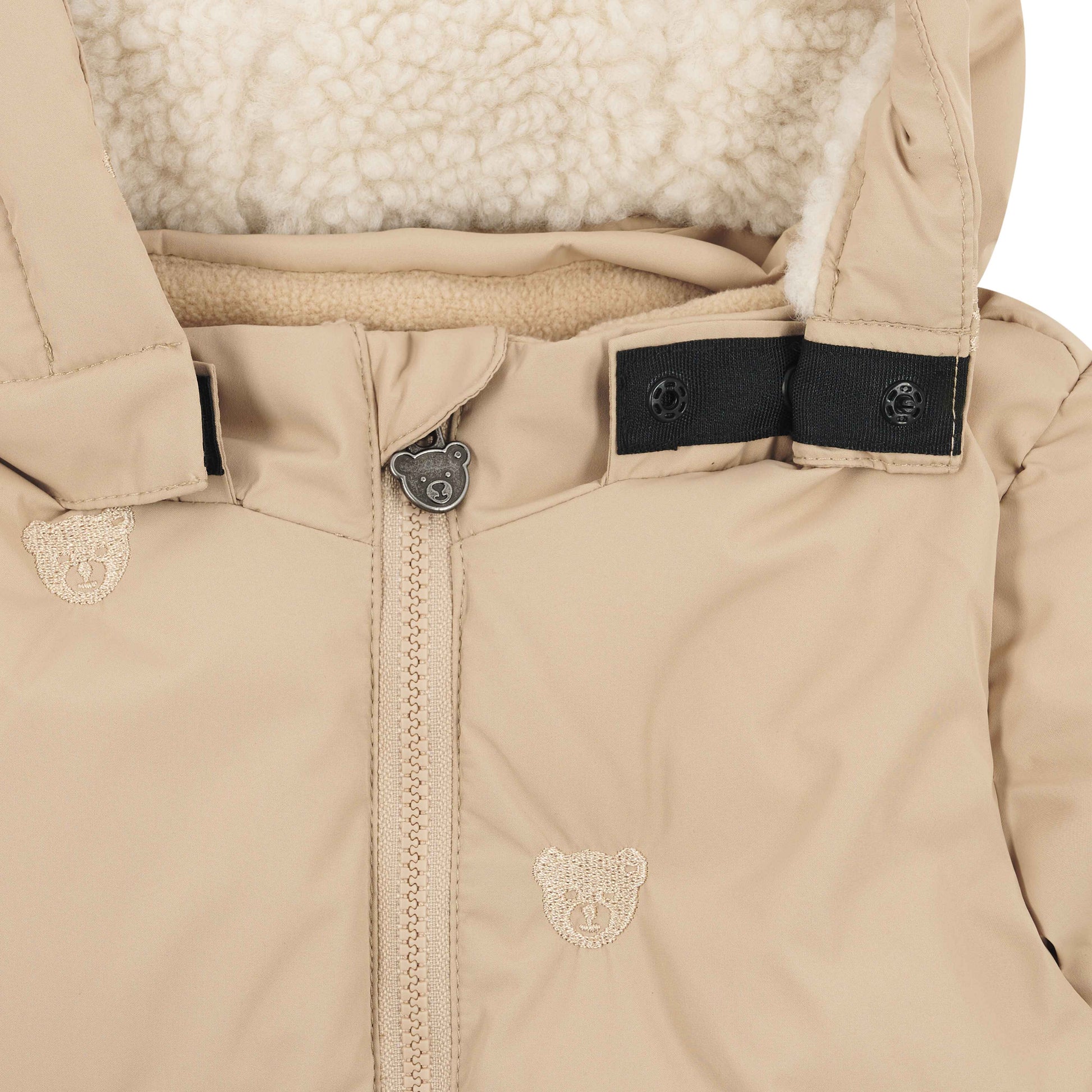 Für kleine Weltentdeckerinnen und Weltentdecker, die auch bei Schnee und Wind unterwegs sein möchten. Diese wattierte Schneejacke begeistert mit wärmendem Komfort und wetterfestem Design. Das liebevoll gestaltete Allover-Muster mit kleinen Teddybärmotiven verleiht der Jacke einen verspielten Look. Dank einer ökologischen BIONIC-FINISH®ECO Imprägnierung ohne Weichmacher, ist das Obermaterial wind- und wasserabweisend sowie atmungsaktiv. Eine abnehmbare Kapuze sowie ein hoher Stehkragen mit Reißverschluss schützen zuverlässig vor Kälte. Zwei seitliche Taschen bieten Platz für kleine Schätze – ein funktionales Lieblingsstück mit Wohlfühlgarantie.