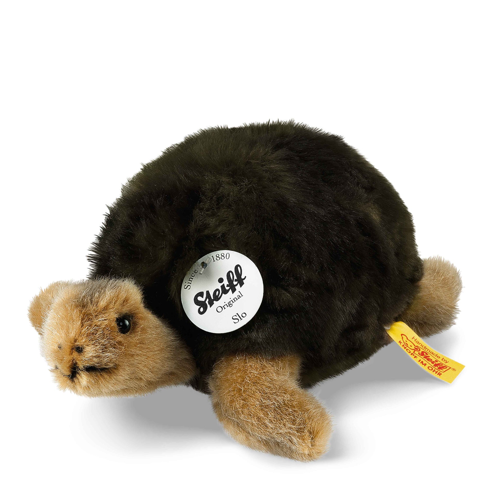 Slo die grüne Schildkröte hat eine Größe von 20 cm und ist aus streichelweichem Webpelz. Slo ist waschmaschinenfest bei 30°C und freut sich auf gemeinsame Abenteuer und Kuscheleinheiten. Slo hat wundervoll gemustertes Fell und kommt ihrem natürlichen Vorbild verblüffend nah.