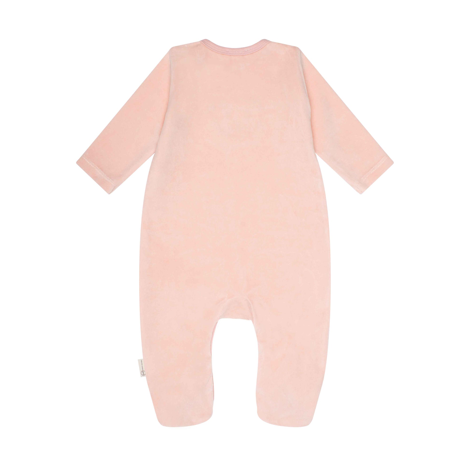 Samtig-weich und in großzügiger Passform gearbeitet, gehört der klassische Strampler zur Grundausstattung der kleinsten Weltentdecker. Dank praktischer Knöpfung an der Schulter und Druckknöpfchen an den Beinen ist das Anziehen unkompliziert. Flexibler Nicky Velours begleitet Spielen, Toben und gemütliches Entspannen mit Bewegungsfreiheit. In dem Einteiler lässt sich auch wunderbar einschlafen. Hübsches Rosé ist als Klassiker auch wunderschön festlich kombinierbar. Für alle Fälle ist ein großes, flauschiges Steiff Teddybärmotiv auf der Brustmitte jederzeit mit unterwegs. Ein Lieblingsstück für jeden Tag!