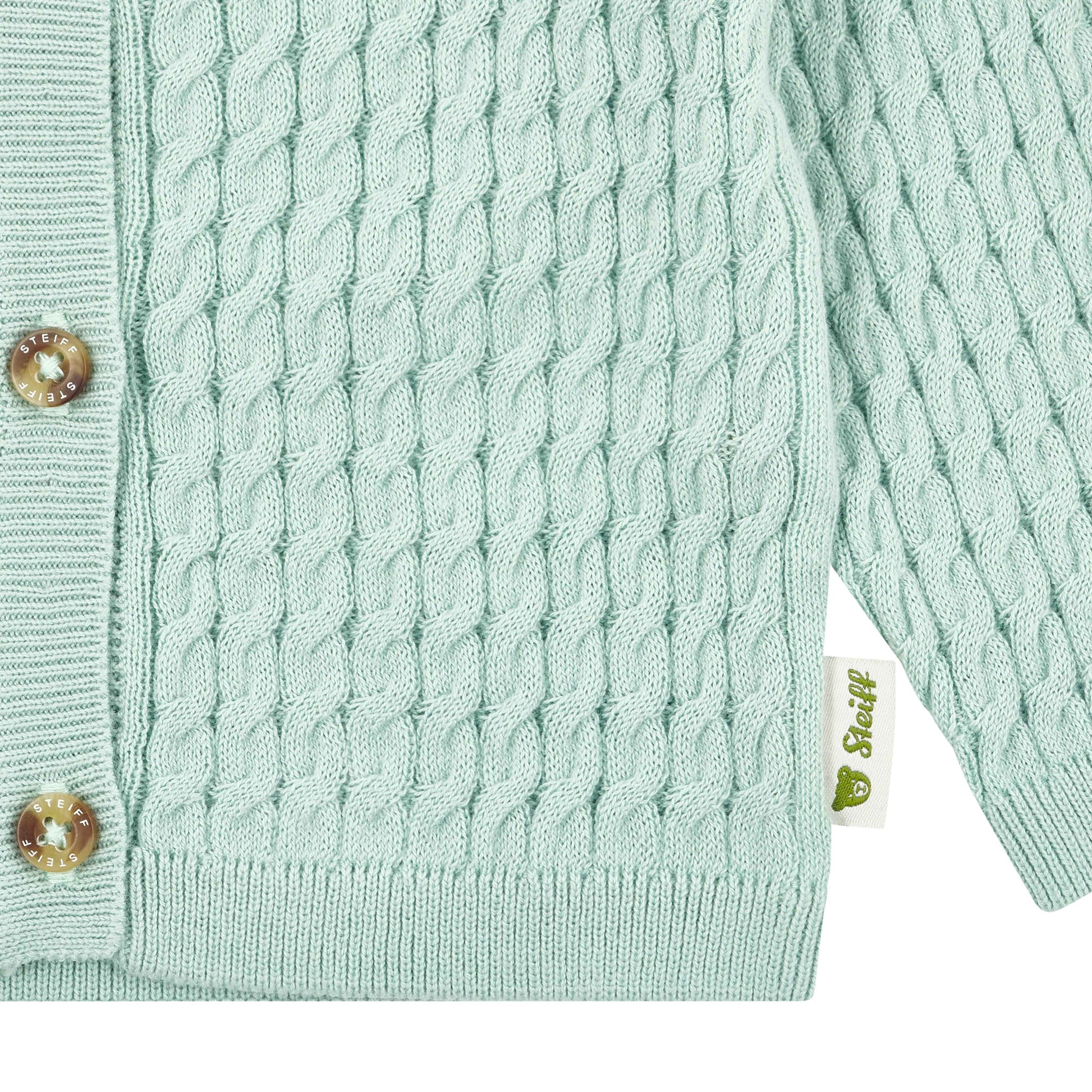 Ein liebevolles Detail ist das klassische Teddybärmotiv von Steiff auf der Brust, das dem Cardigan eine sanfte, verspielte Note verleiht, ohne sich in den Vordergrund zu drängen 🐻✨