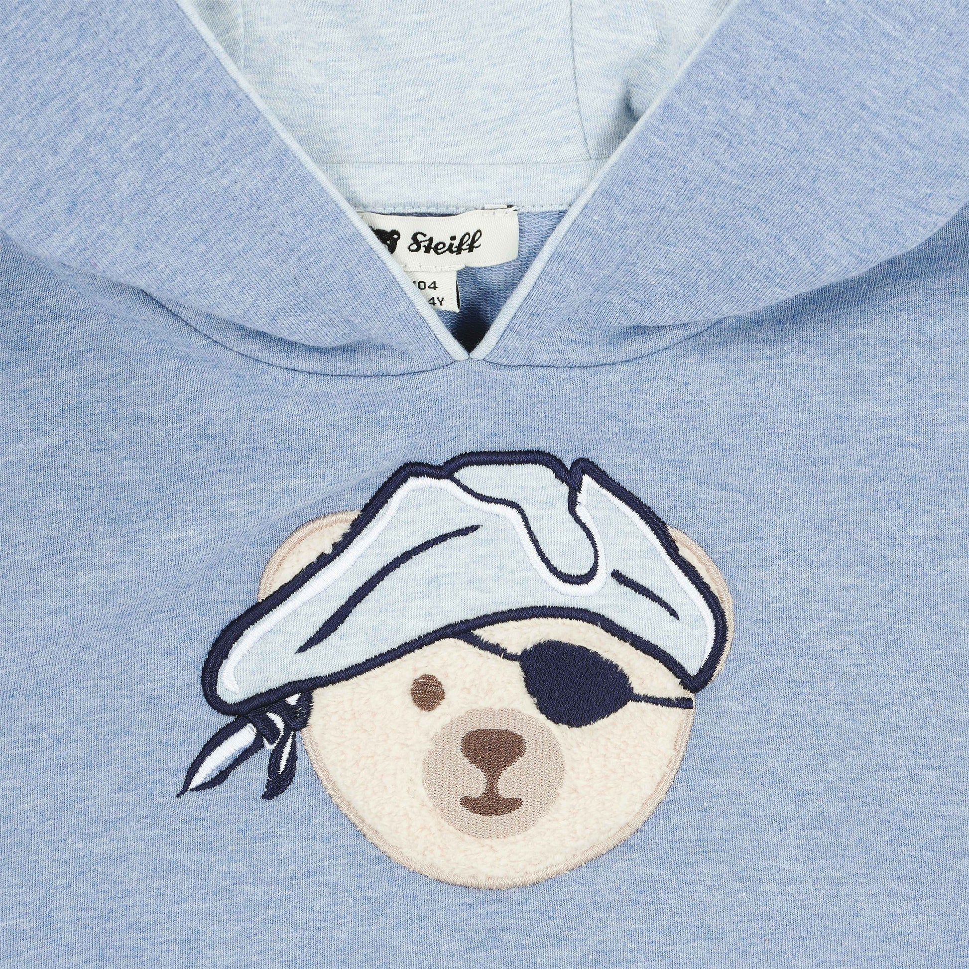 Mit gemütlicher Kapuze und in sattem Blau geht es mit diesem Sweatshirt lässig durch Alltag und Abenteuer. Weicher Sweatstoff bietet ein herrliches Tragegefühl und hält angenehm warm. Flexible Rippbündchen ermöglichen ein unkompliziertes Hineinschlüpfen. Die Kapuze mit kontrastreichem Innenfutter sowie Kontrastnähten an Armöffnungen und Kapuzenrand verleiht sportliche Akzente. Ein großes, flauschiges Steiff Teddybärmotiv mit coolen Details und feiner Stickerei ziert die Brustmitte. Gemütlicher Tragespaß garantiert!