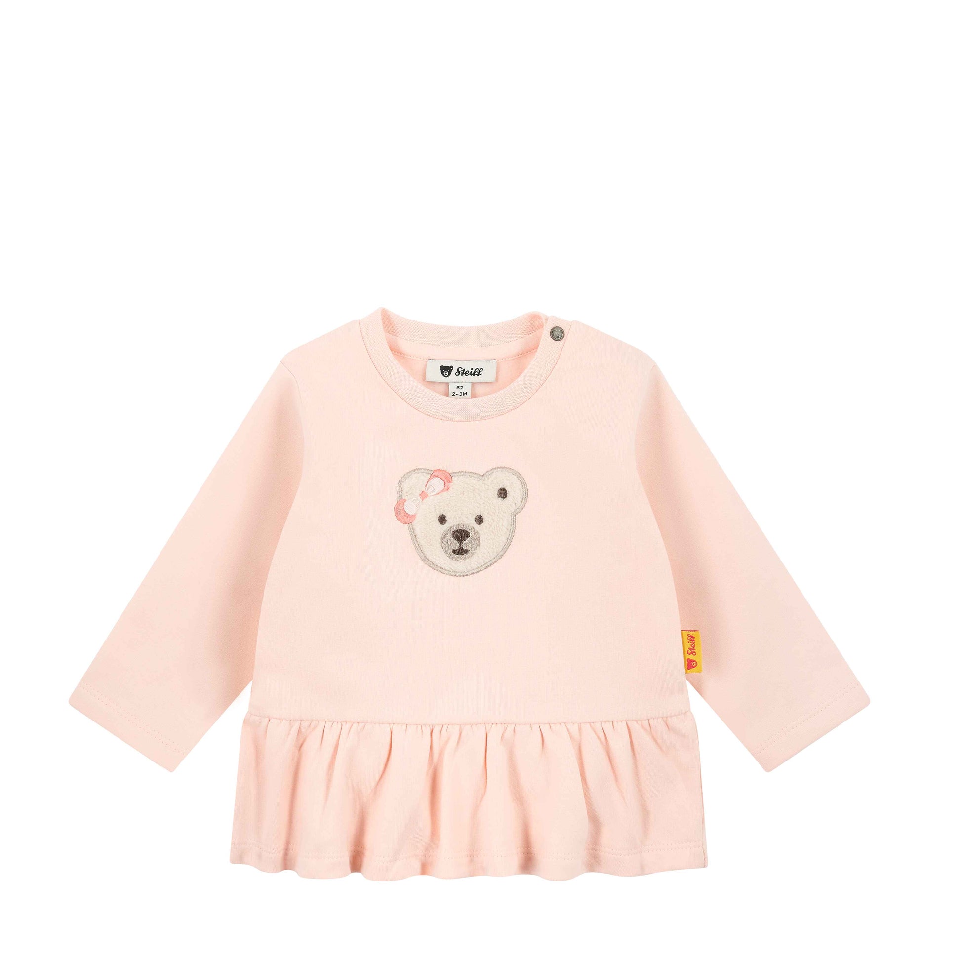 Ob unterwegs oder beim Spielen zu Hause – dieses rosafarbene Sweatshirt ist ein zauberhafter Begleiter für stilbewusste Weltentdeckerinnen. Der weiche Sweat bietet angenehmen Tragekomfort und lädt zum Wohlfühlen ein. Der Volant am Saum bringt eine verspielte Note ins Design und lässt kleine Herzen höherschlagen. Druckknöpfe an der Schulter erleichtern das An- und Ausziehen. Auf der Vorderseite sitzt das klassische Steiff Teddybärmotiv und schenkt ein Gefühl von Geborgenheit. Ein charmantes Basic mit süßem Extra.