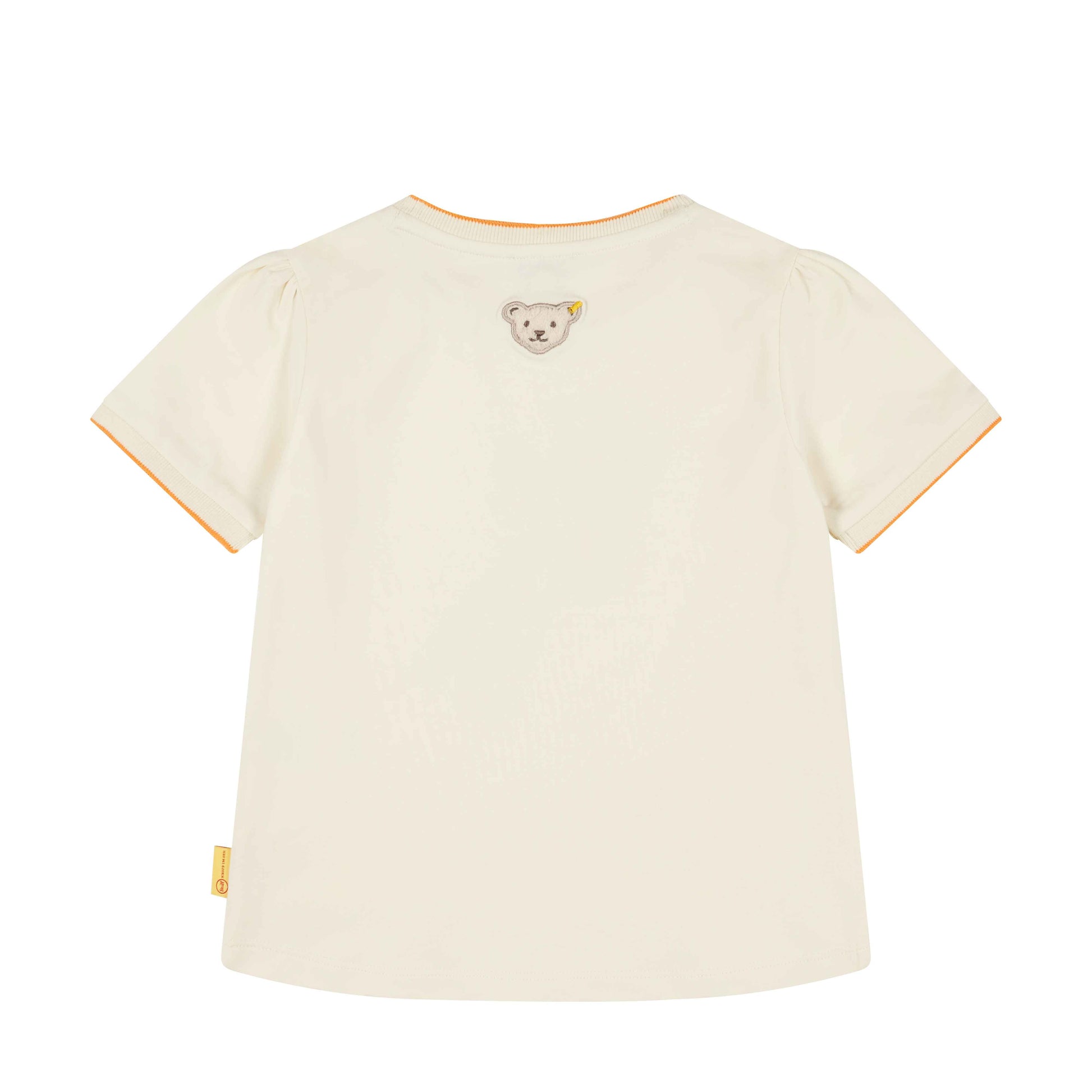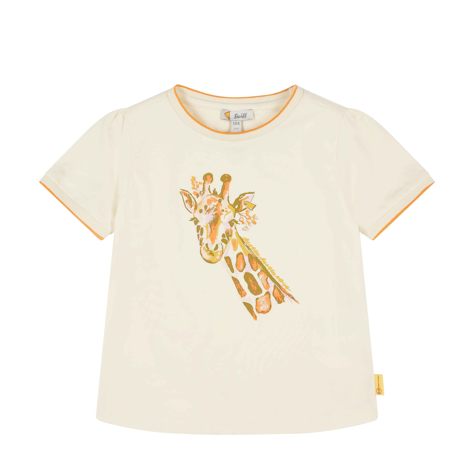 Dieses T-Shirt begleitet unternehmungslustige Mädchen zu den schönsten Ausflügen. Weicher Jersey bietet ein herrliches Tragegefühl. Die lockere Passform und flexible Abschlüsse ermöglichen ein unkompliziertes Hineinschlüpfen und Wohlfühlen. Die farbenfrohe Giraffe bringt zauberhaften Charme in jeden Look und passt auch wunderbar zu festlichen Anlässen. Für alle Fälle ist auch ein flauschiges Steiff Teddybärmotiv überall dabei. Einfach perfekt!
